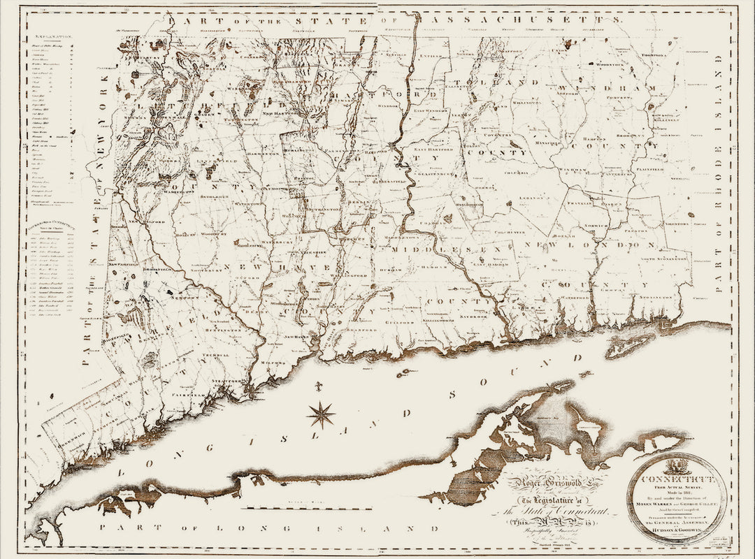 FP1774 - Connecticut 1812 Historic Map, CT Engraved Patent (Standard)