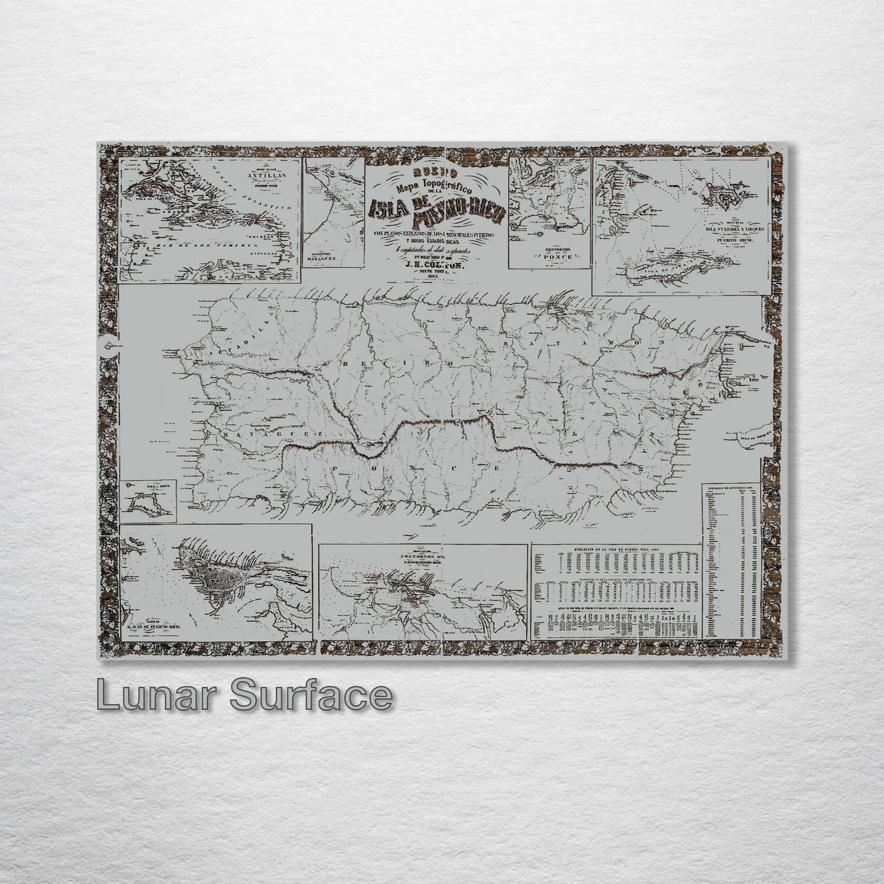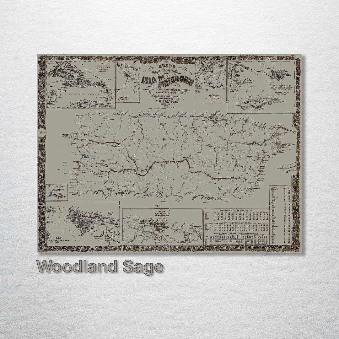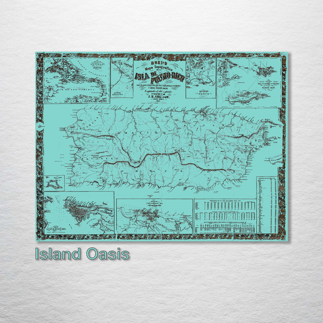 1863 Mapa Topografico De La Puerto Rico