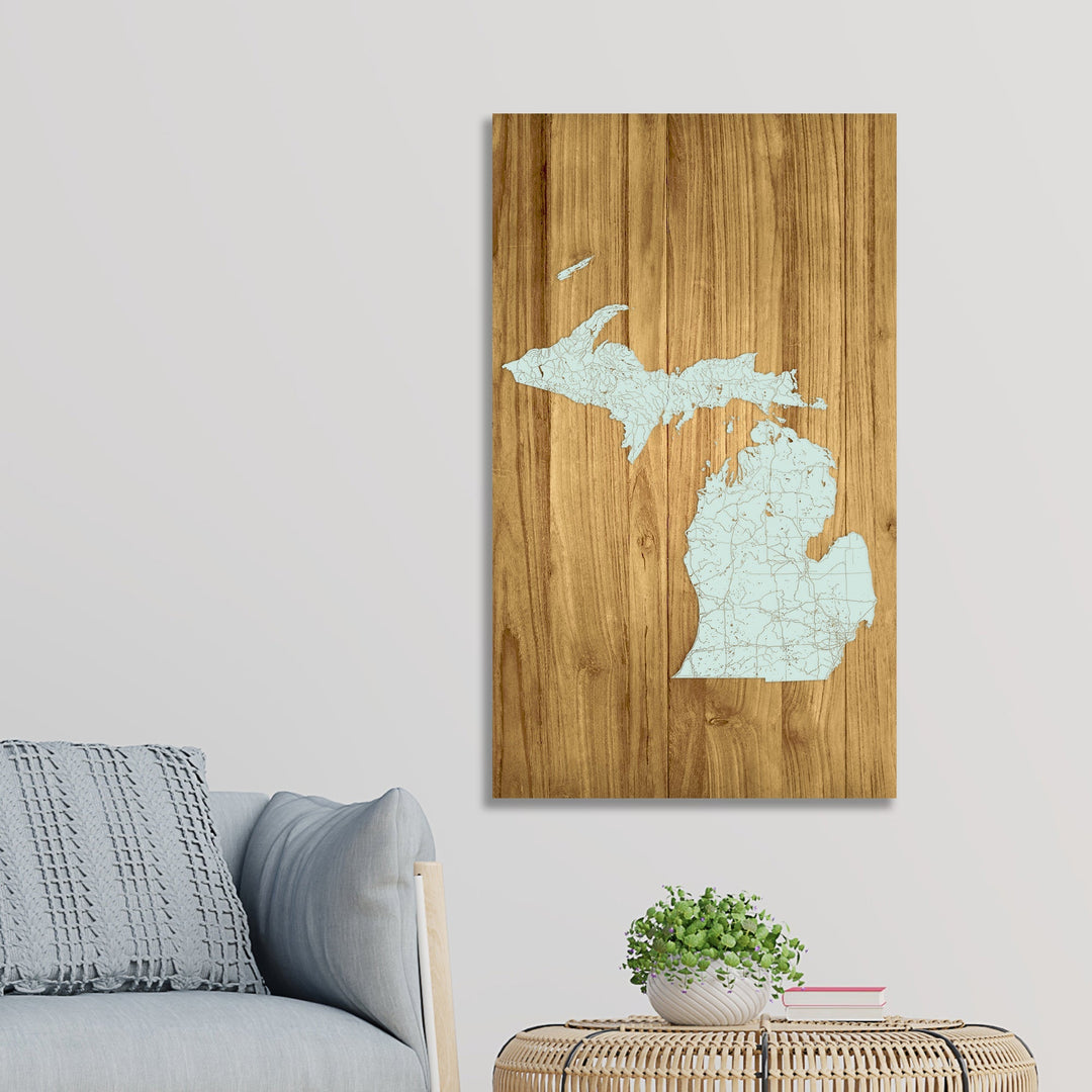 Michigan Isolated Engraved Map (Gold)