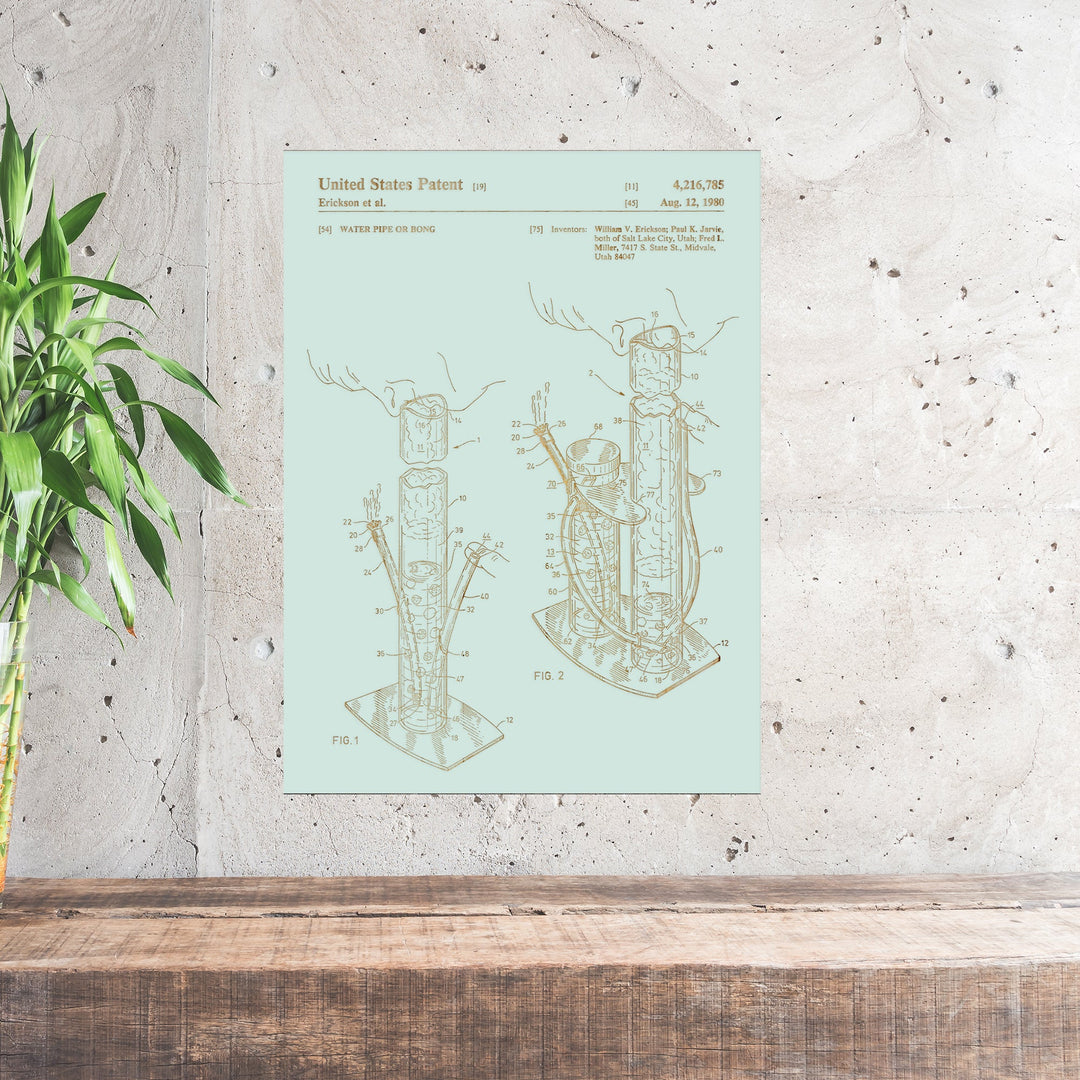 FP0592 - Water Pipe Smoking Engraved Patent (Gold)
