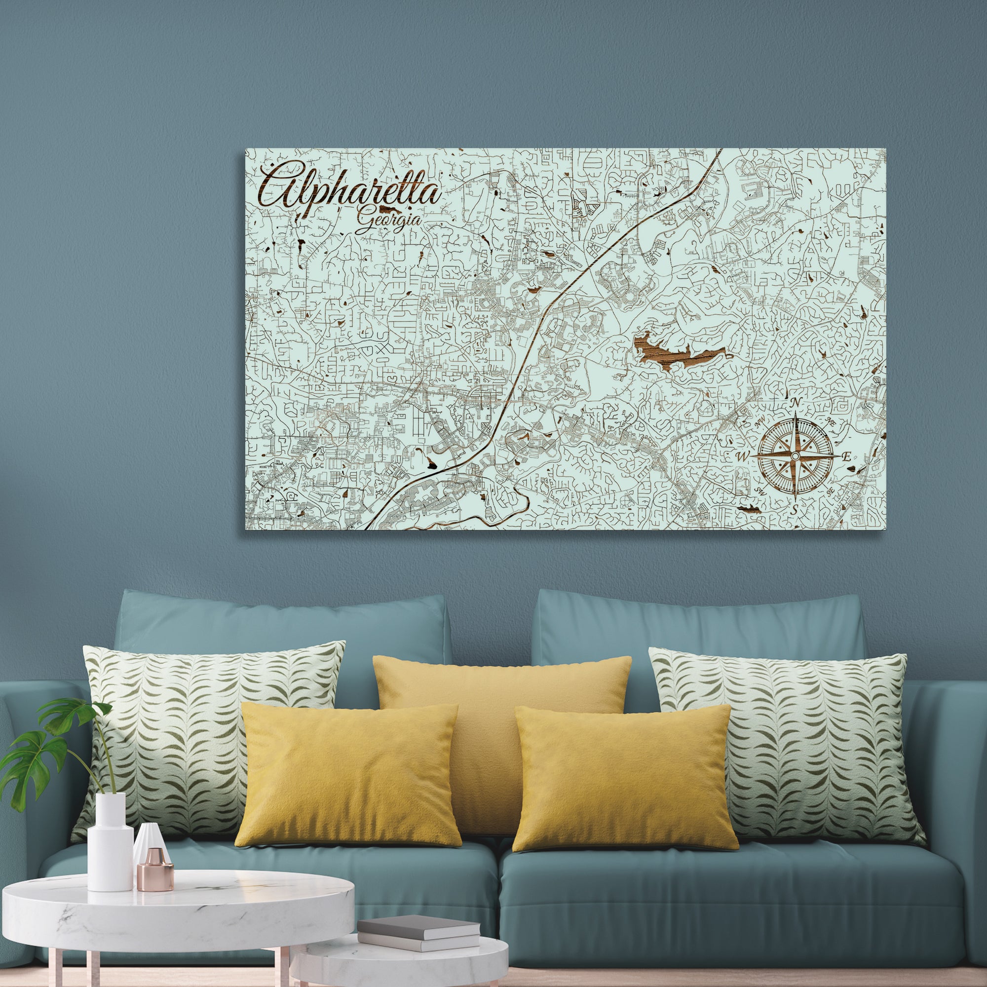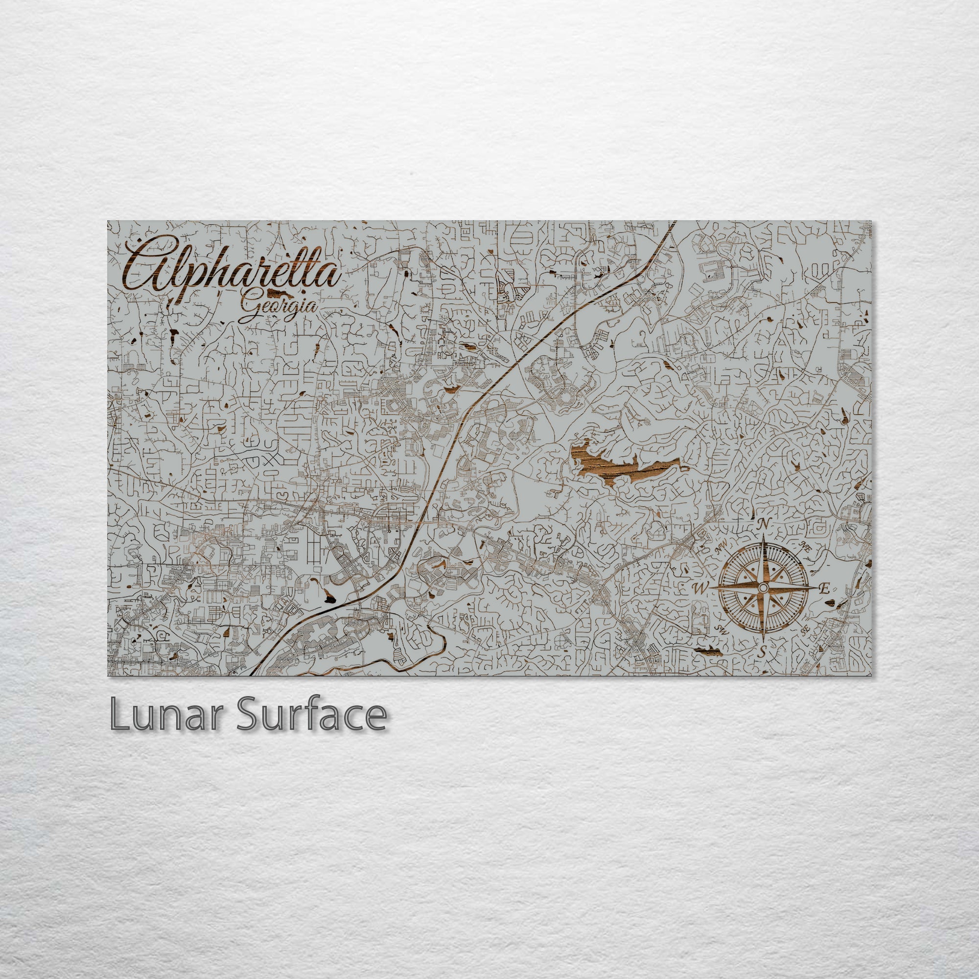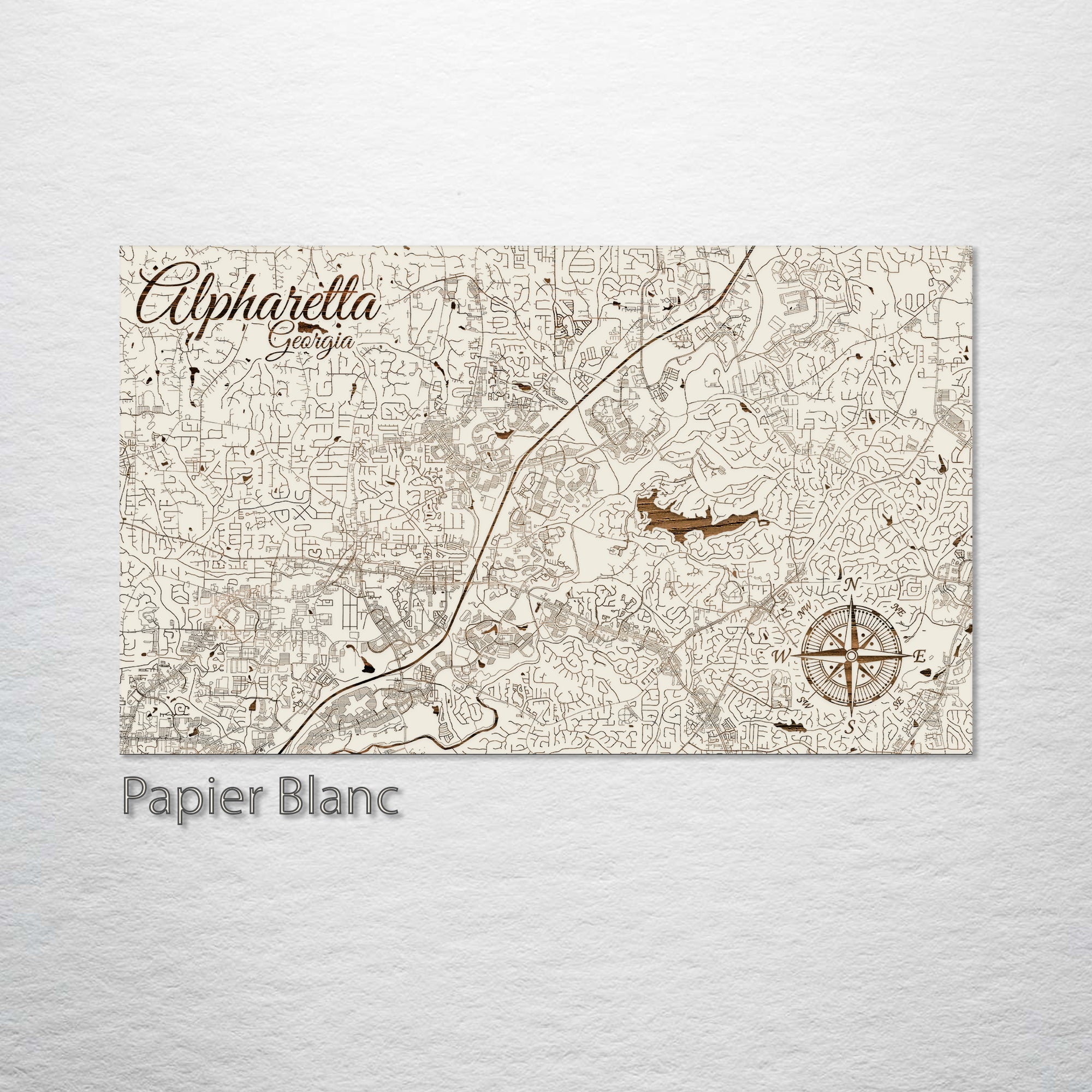 This is a street map of Alpharetta, GA designed by Fire & Pine artists.