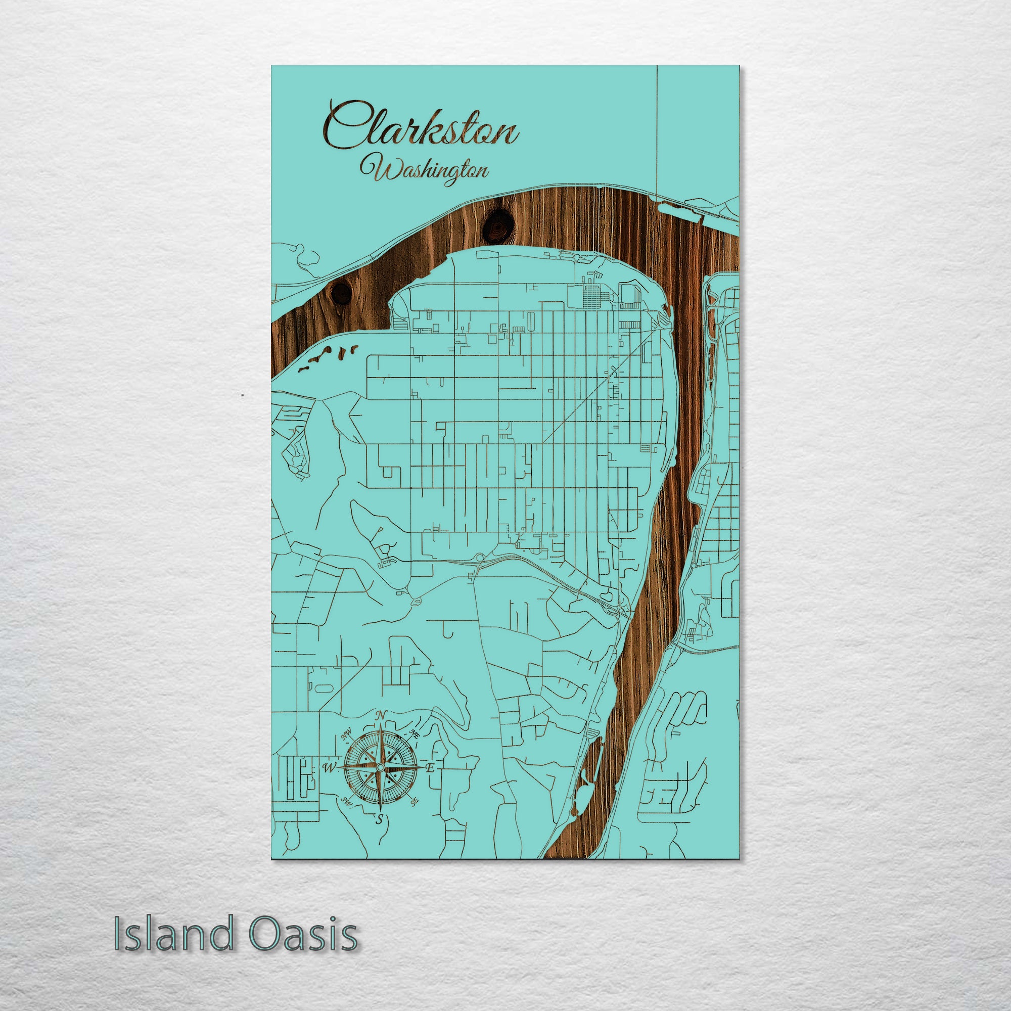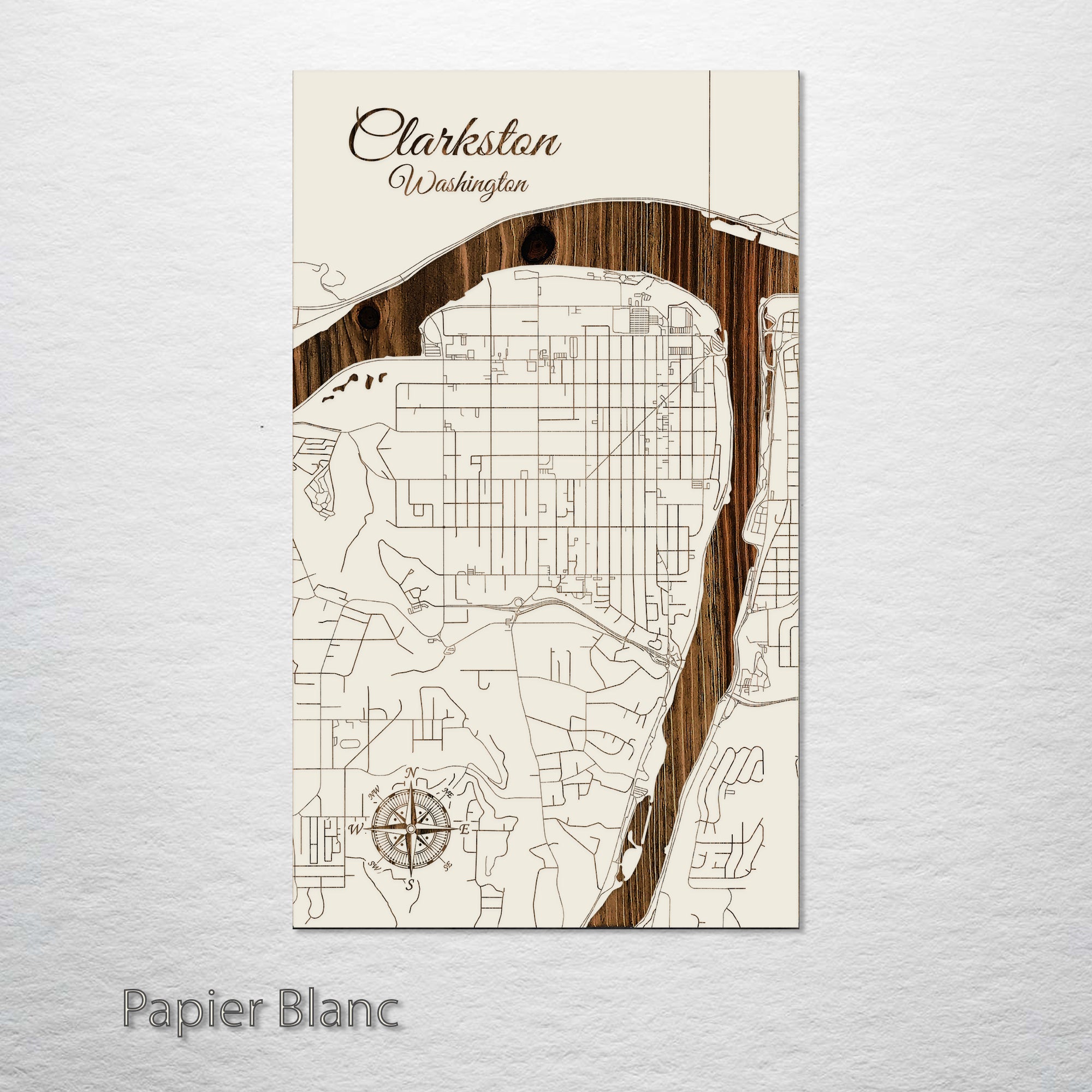 This is a street map of Clarkston, WA designed by Fire & Pine artists.