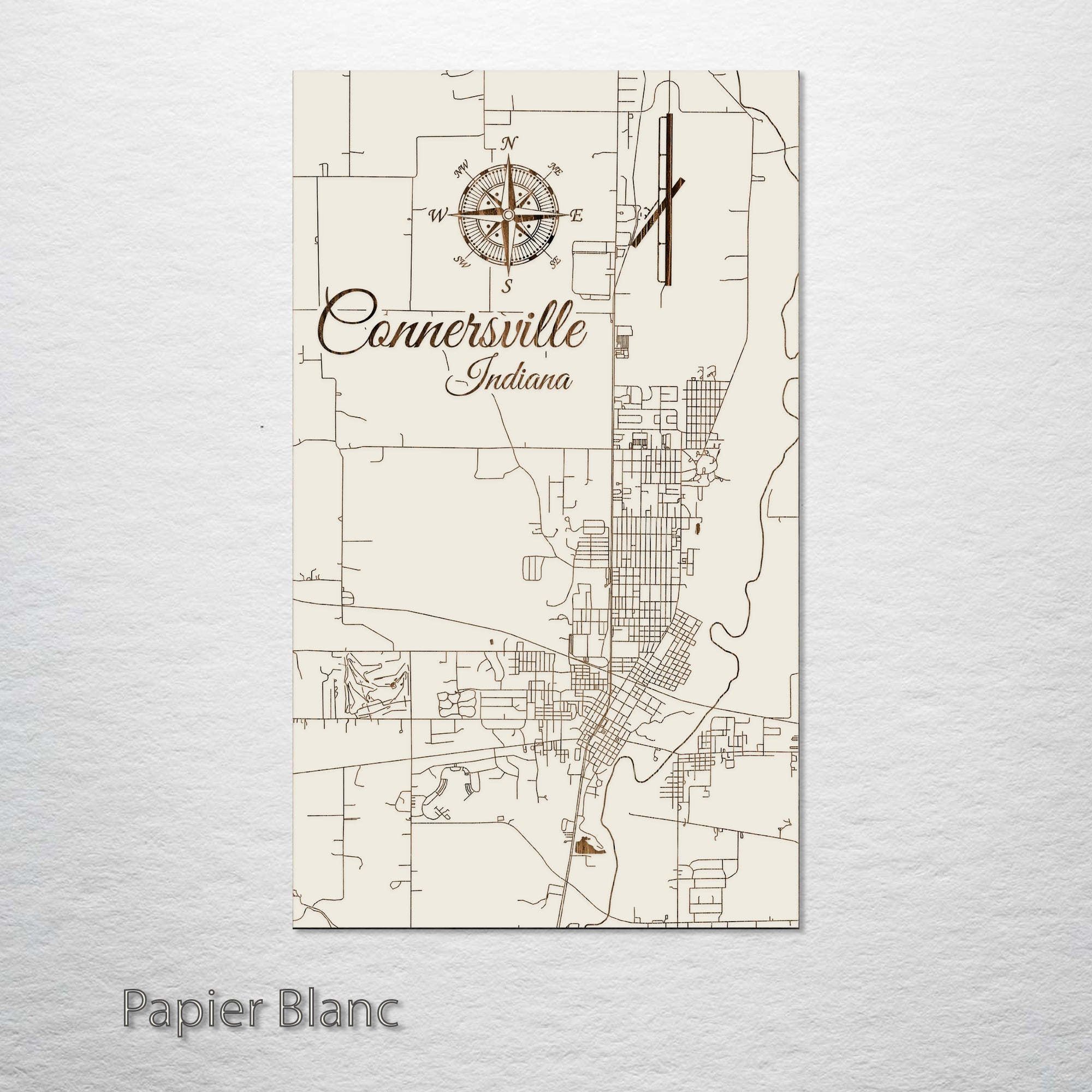 Ideal Selection for Map Connoisseurs and Connersville Admirers: Connersville, Indiana, wood-engraved street map is a superb addition to any map enthusiast's collection. Finely crafted from top-notch pine wood, it beautifully highlights the intricate street patterns of Connersville, making it a prominent and distinct work of art. It's a perfect choice for those with a keen interest in Indiana's unique town layouts or a special connection to Connersville.