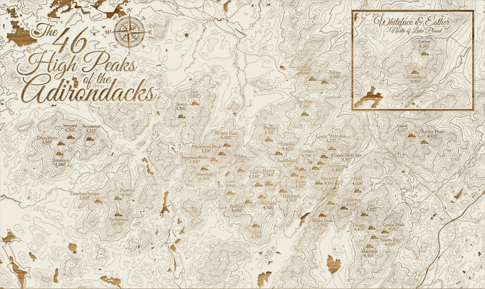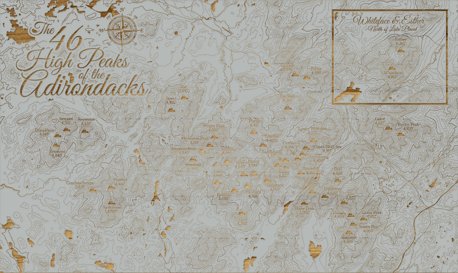 FP1112 - 46ers High Peaks Adirondacks (MI-SM) Engraved Map (Silver)