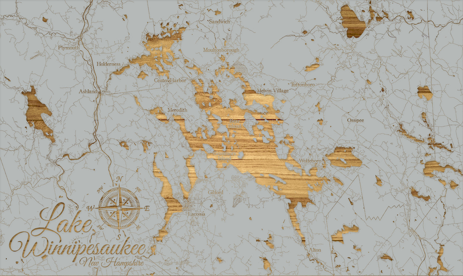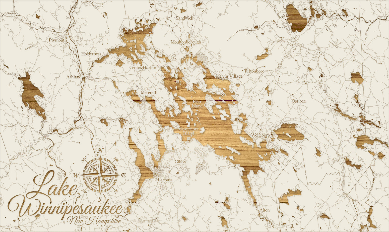 FP0298 - Lake Winnipesaukee Whimsical, NH Engraved Map (Standard)