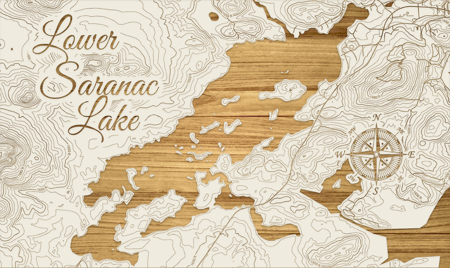 FP1112 - Lower Saranac Lake, NY Engraved Map (Silver)