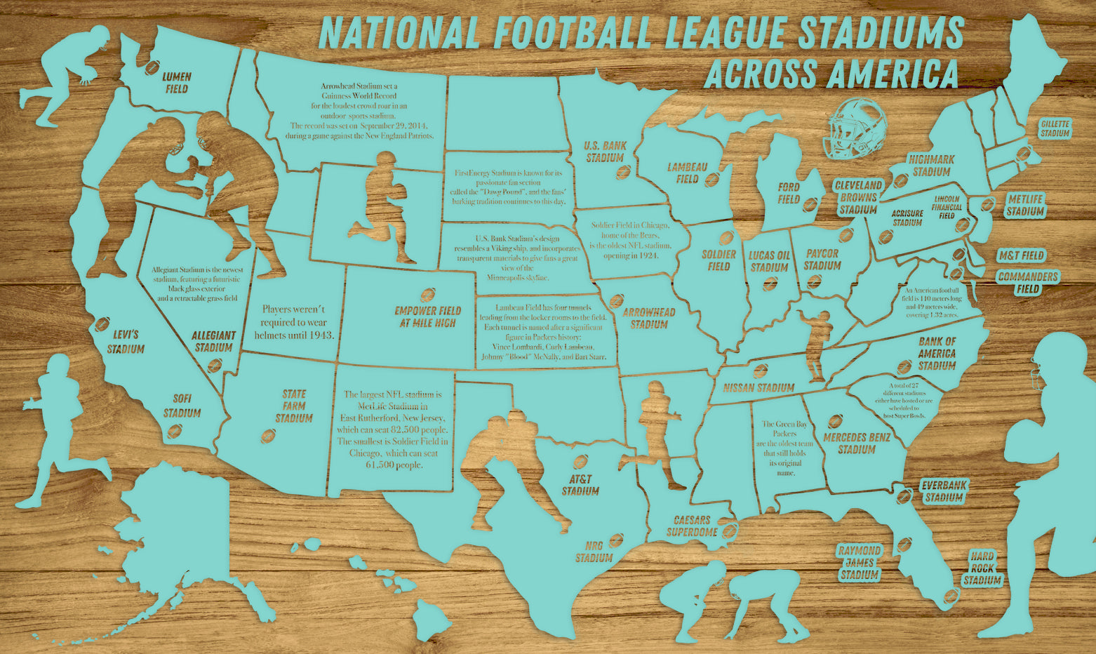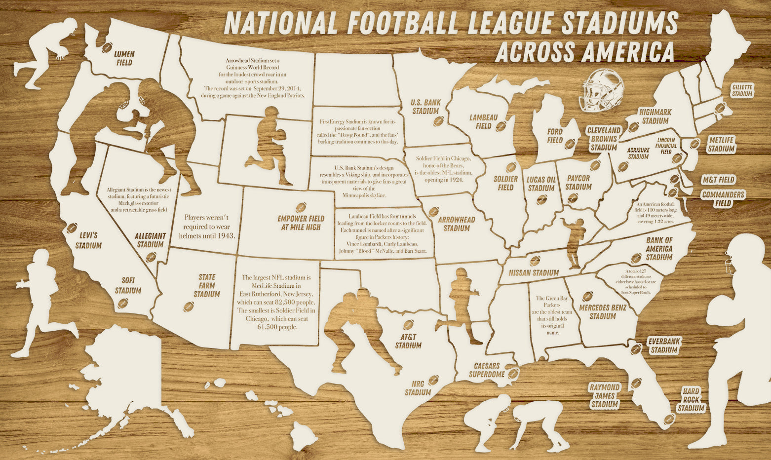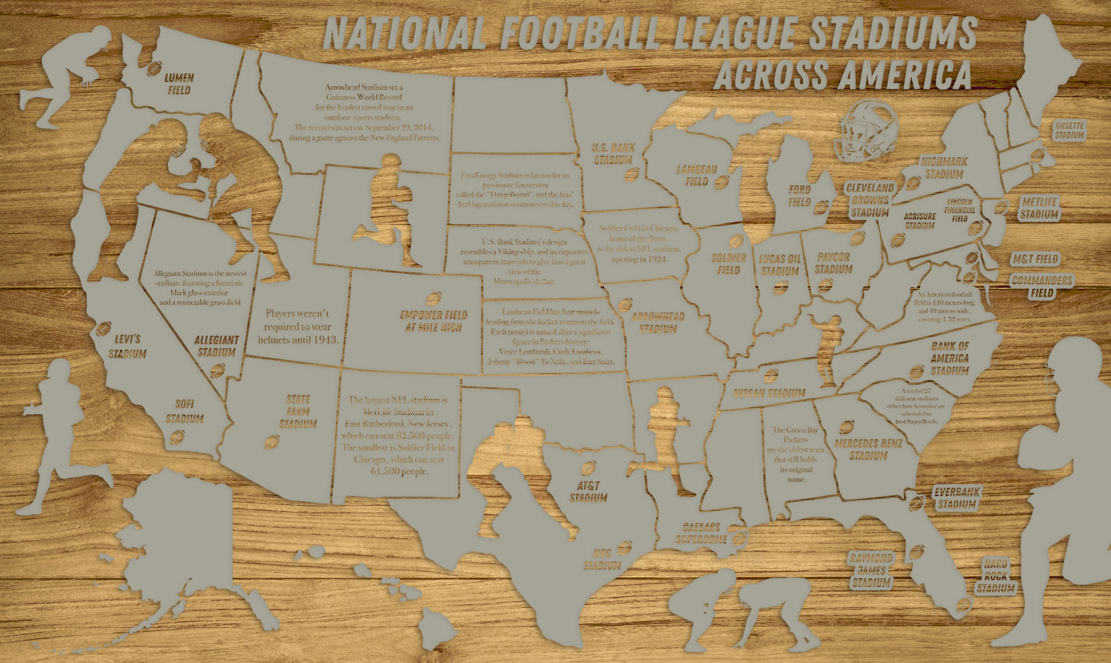 FP0592 - National Football League Stadiums Across America Engraved Map (Collective)