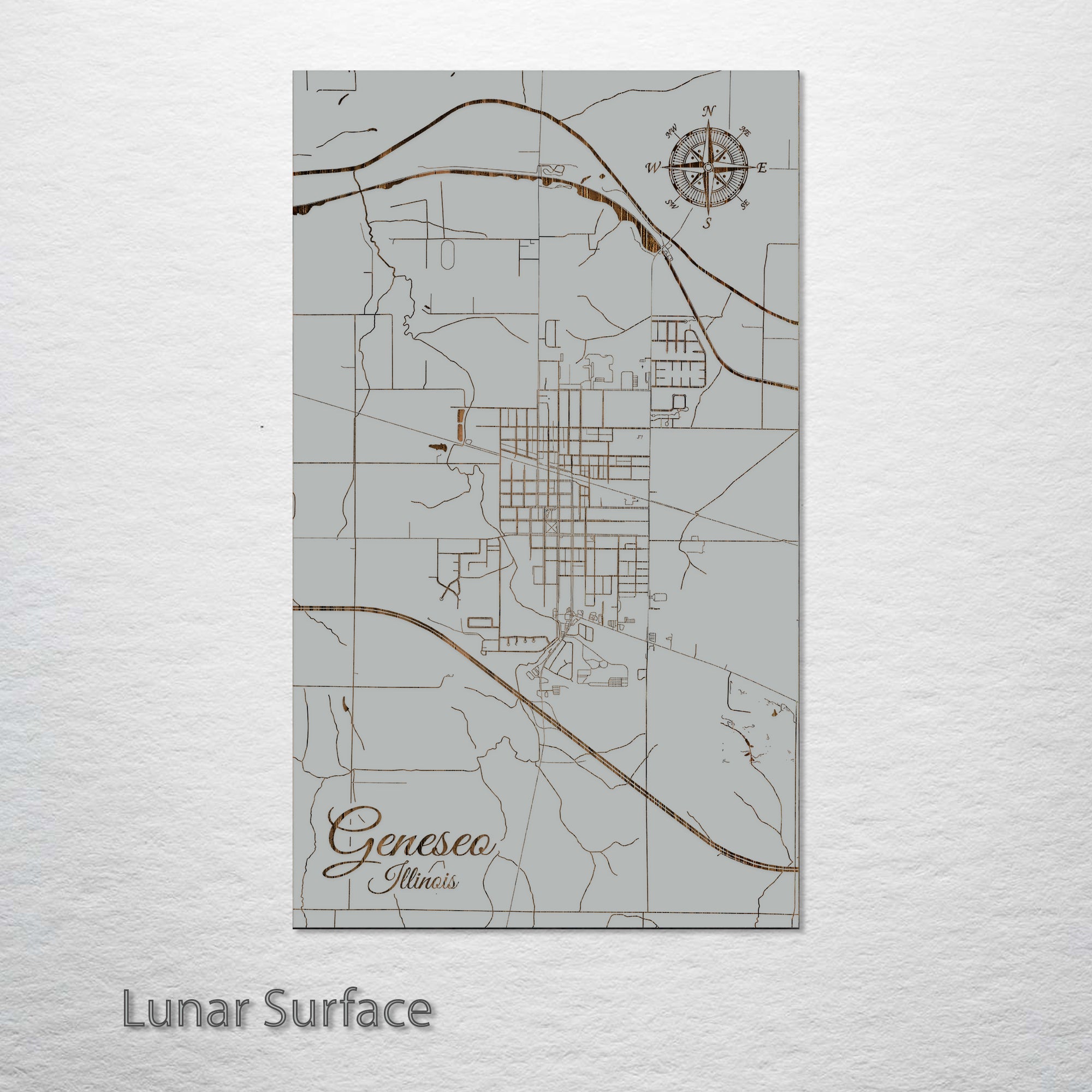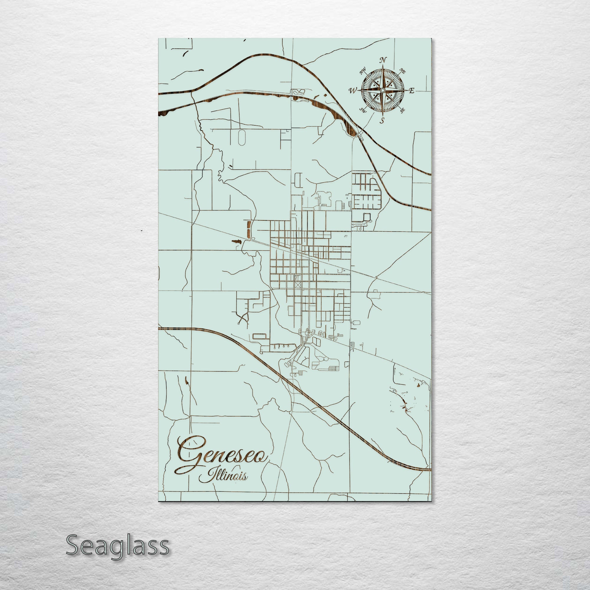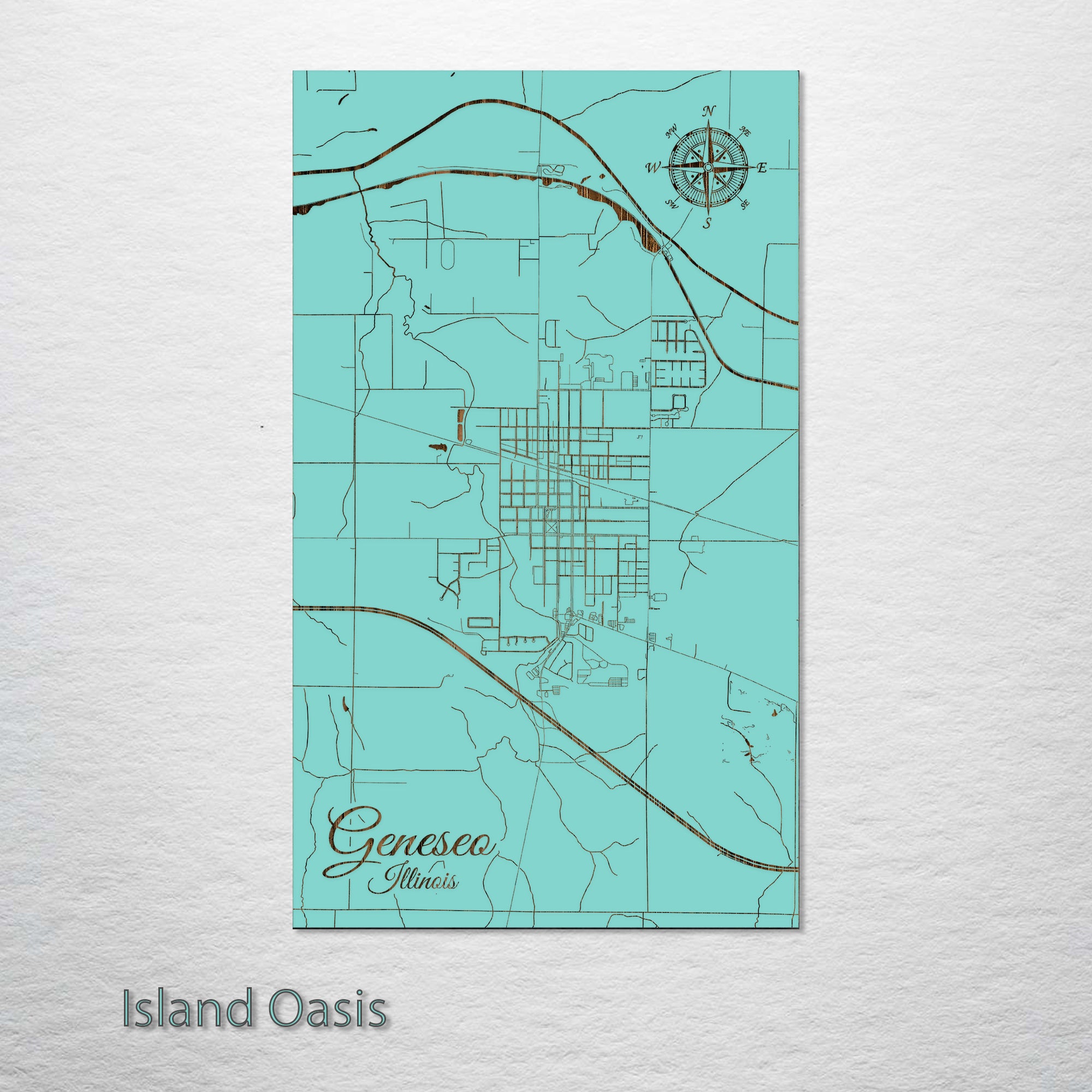 This is a street map of Geneseo, IL designed by Fire & Pine artists.