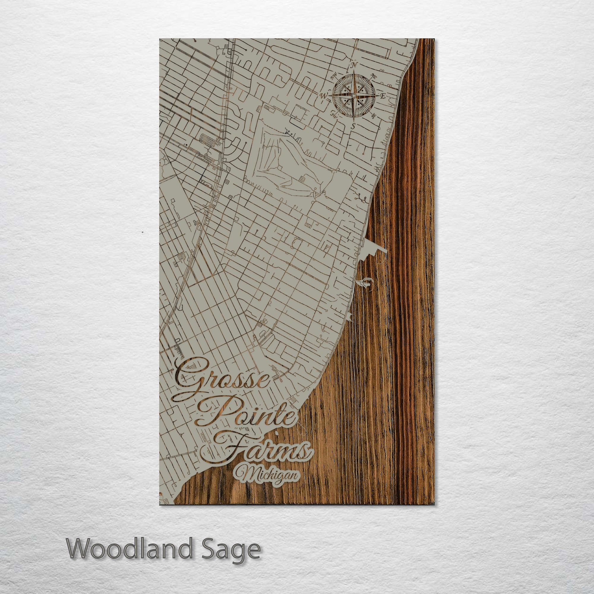 This is a street map of Grosse Pointe Farms, MI designed by Fire & Pine artists.
