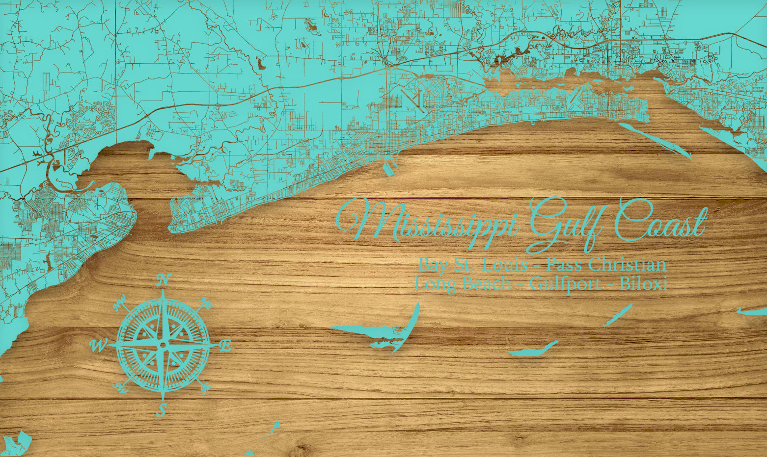 FP1234 - Mississippi Gulf Coast, MS Engraved Map (Standard)