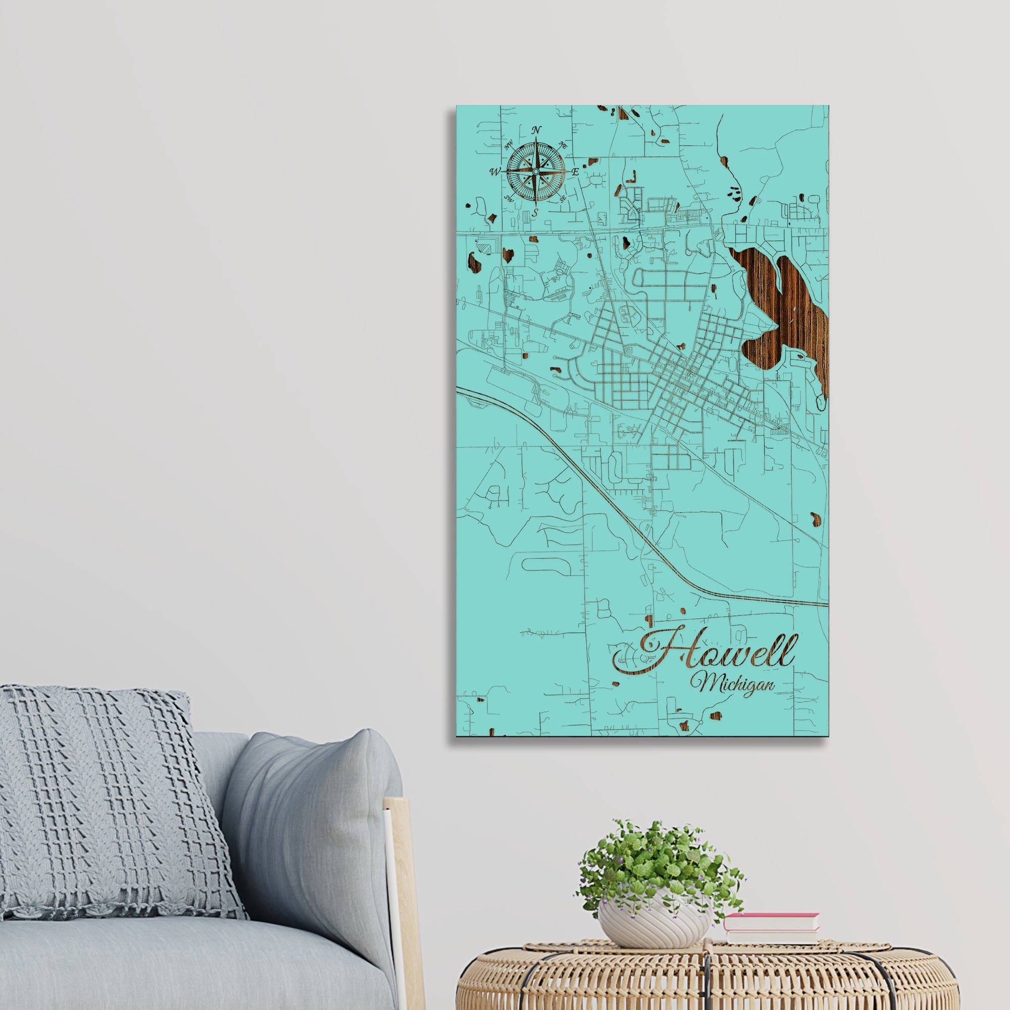 This is a street map of Howell, MI designed by Fire & Pine artists.
