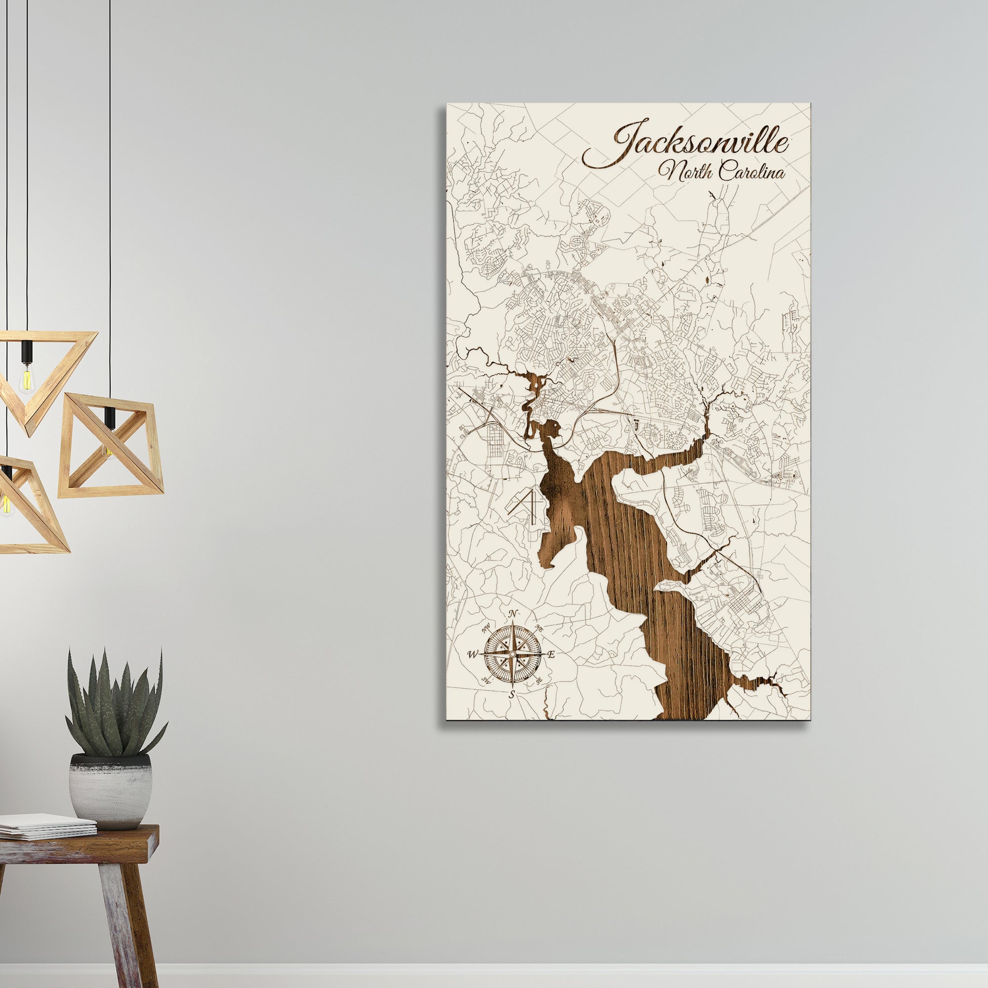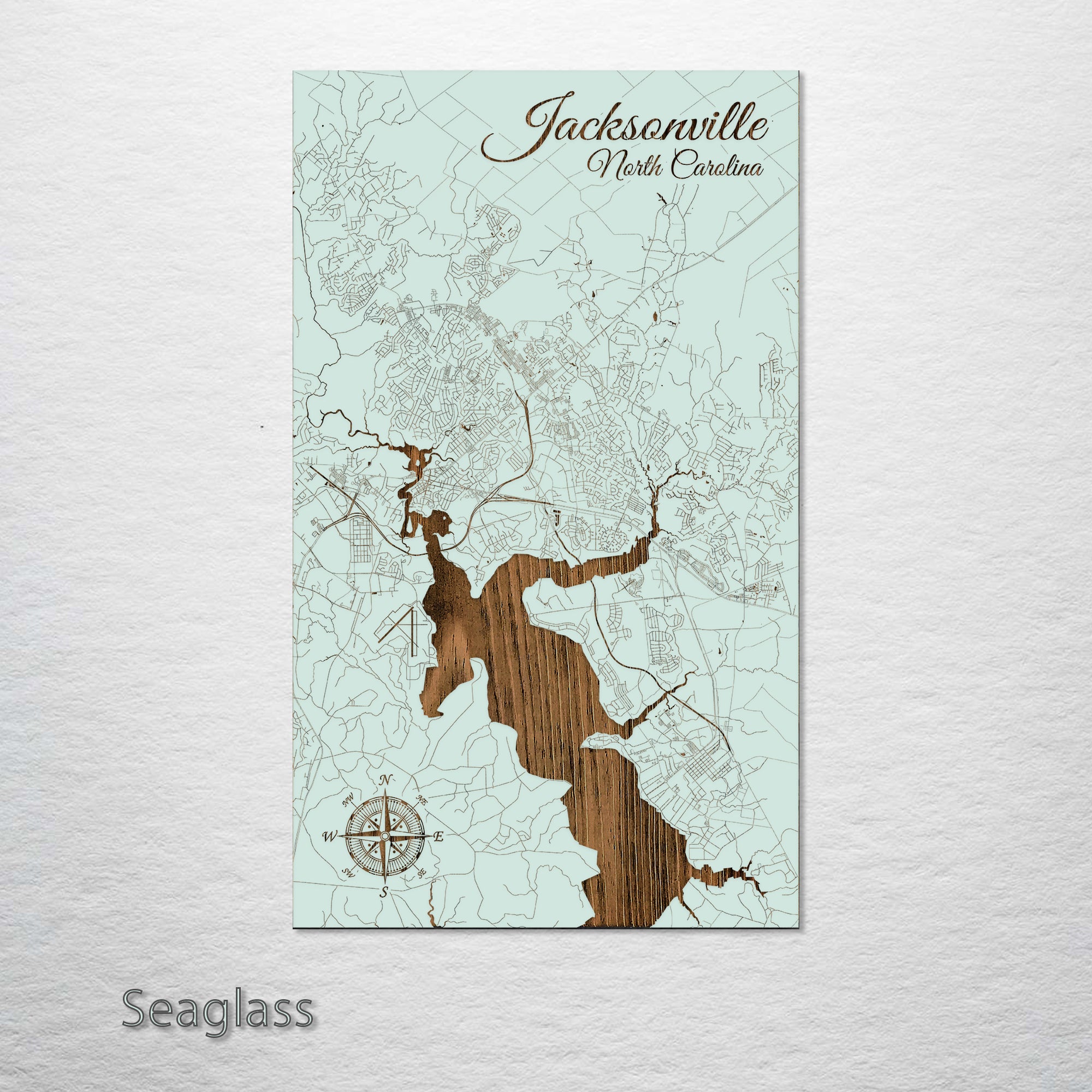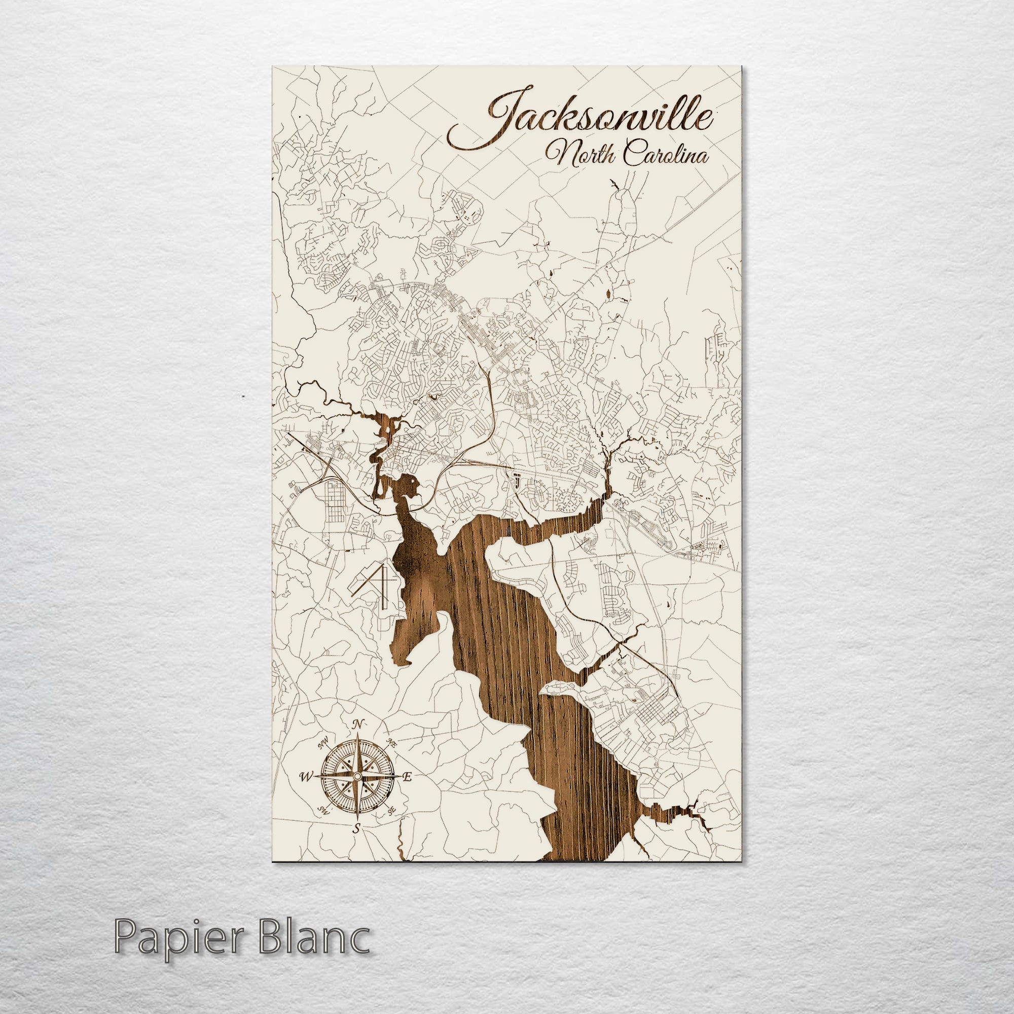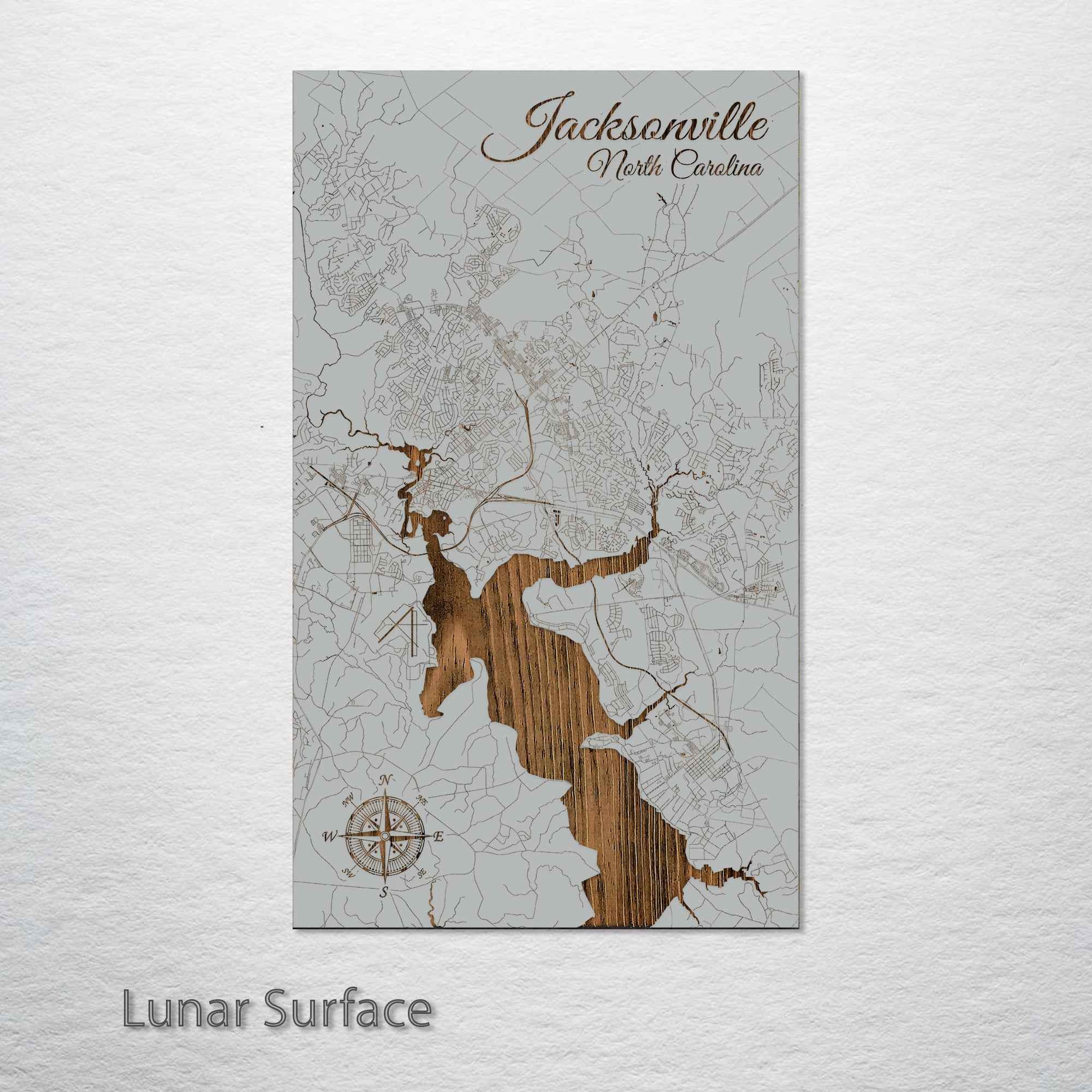This is a street map of Jacksonville, NC designed by Fire & Pine artists.