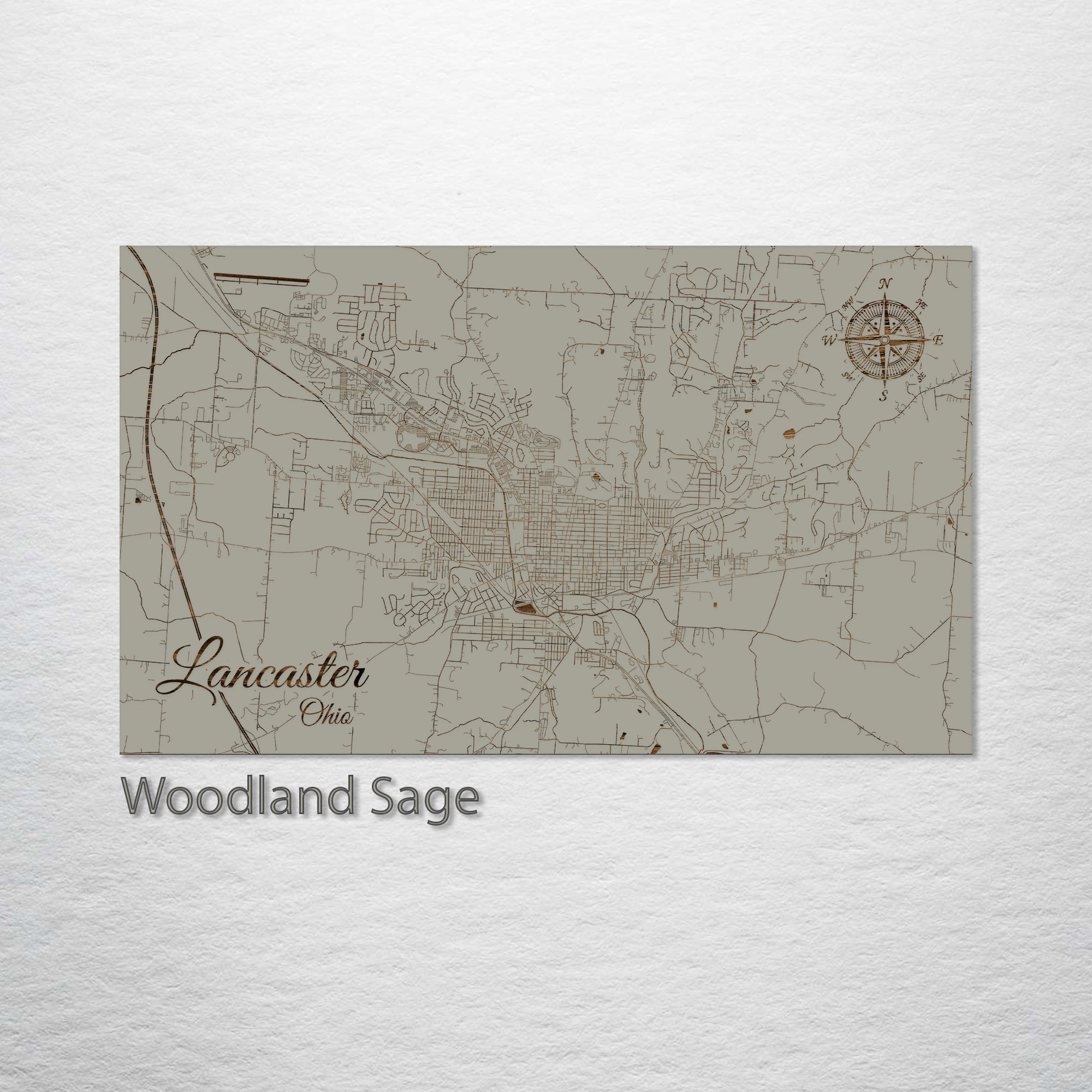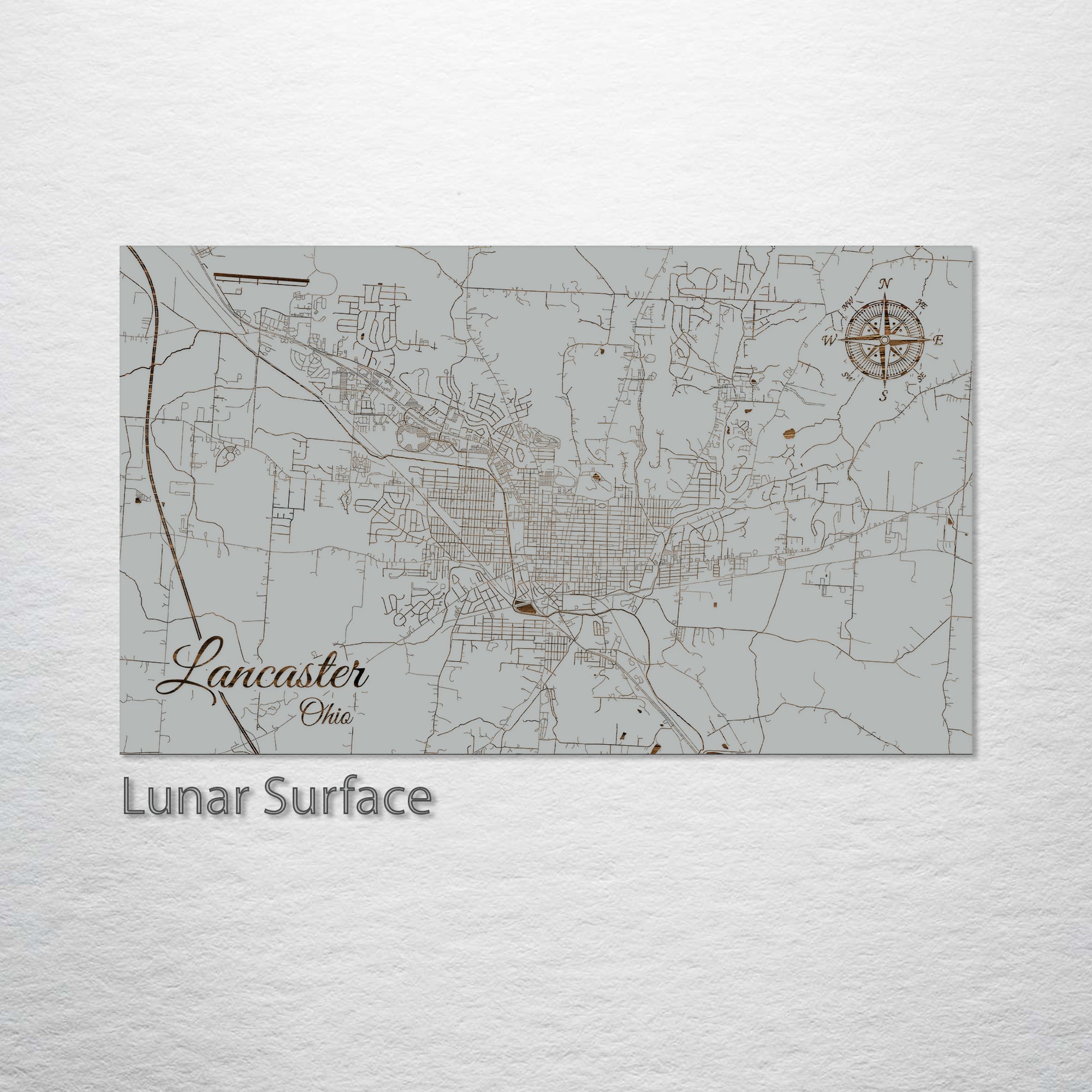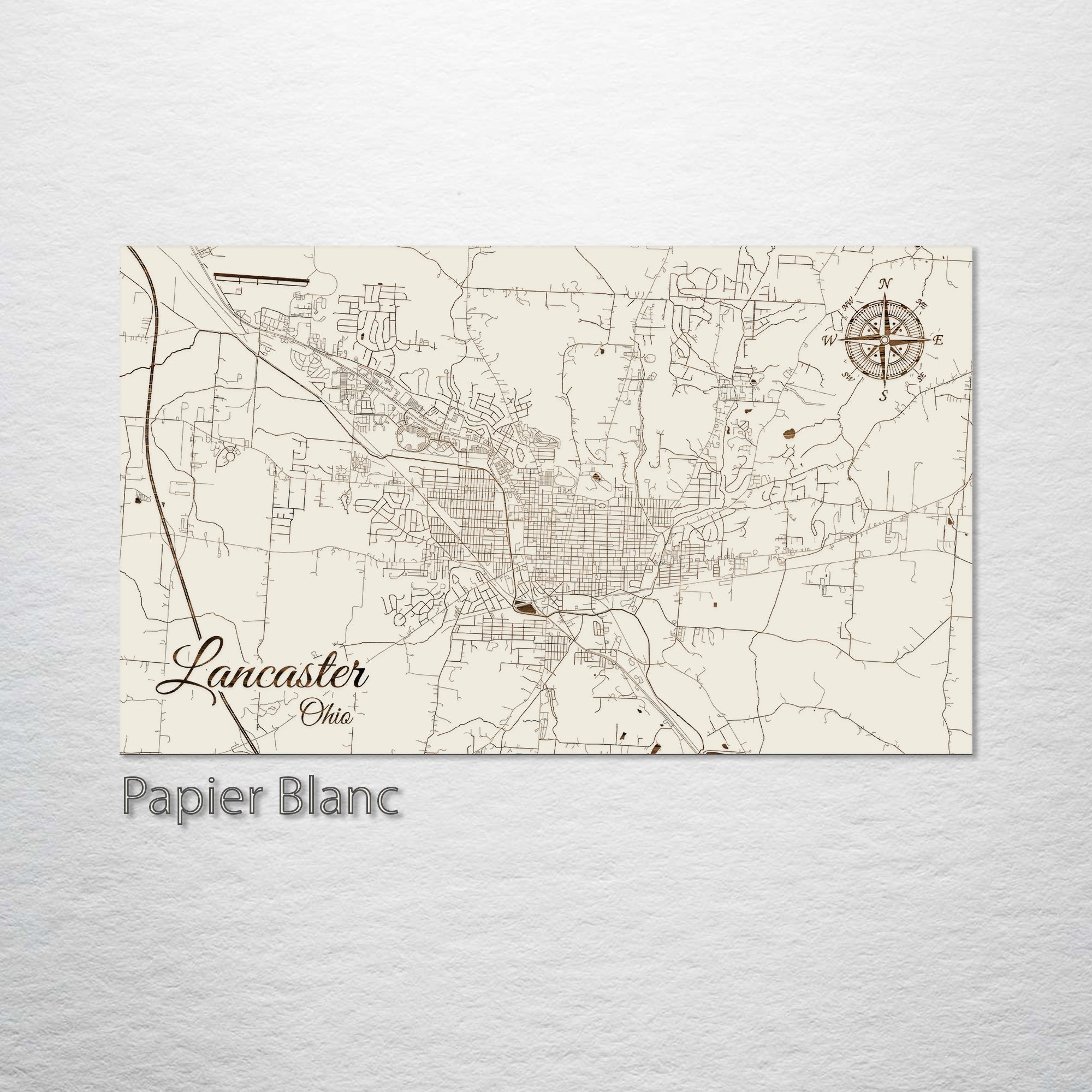 This is a street map of Lancaster, OH designed by Fire & Pine artists.