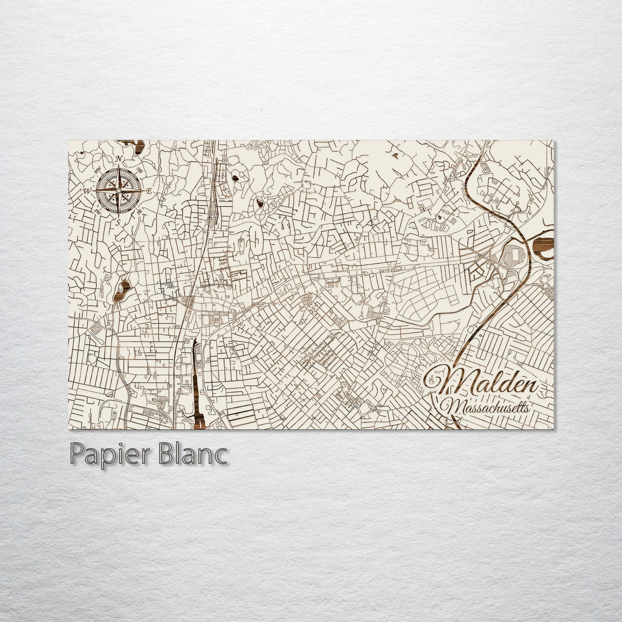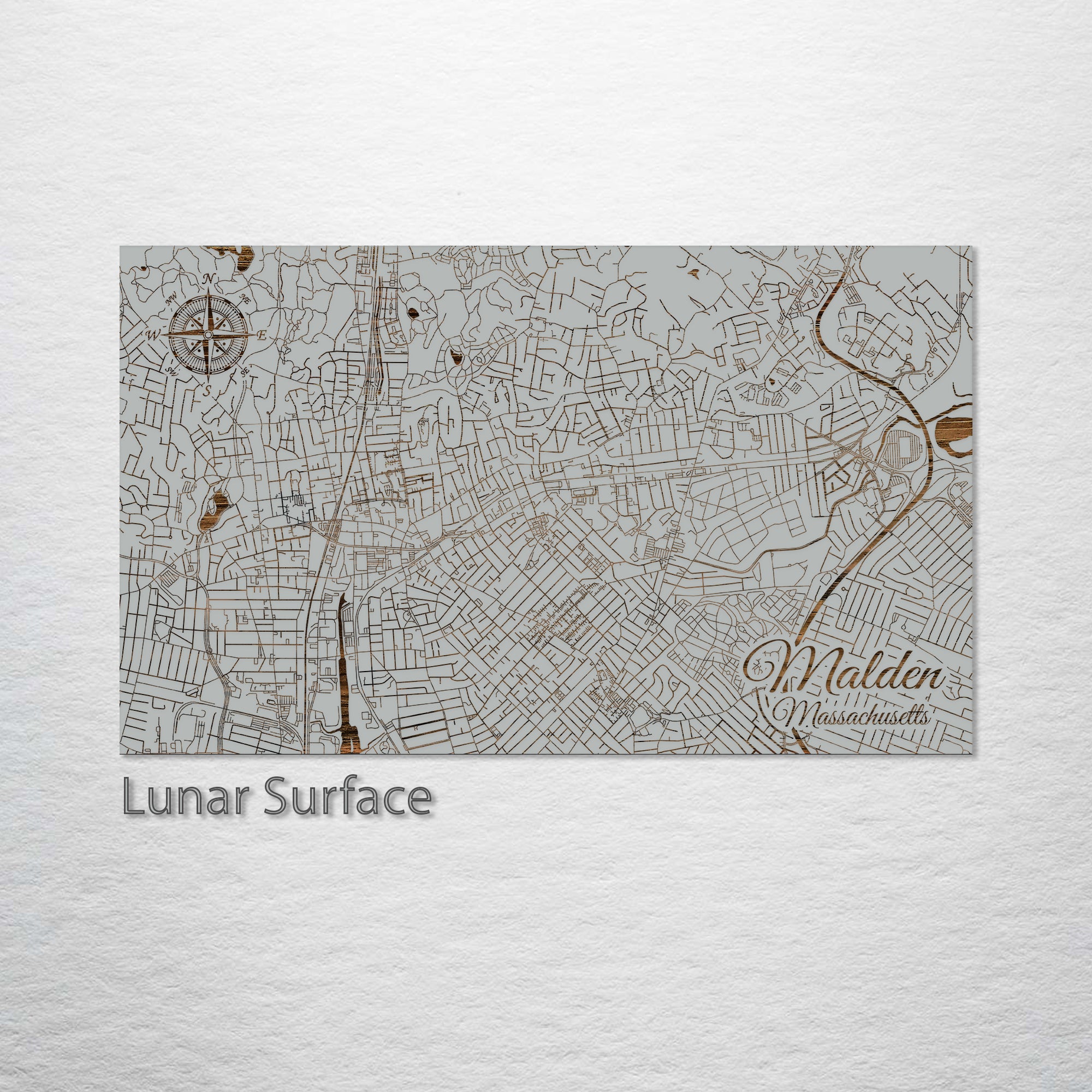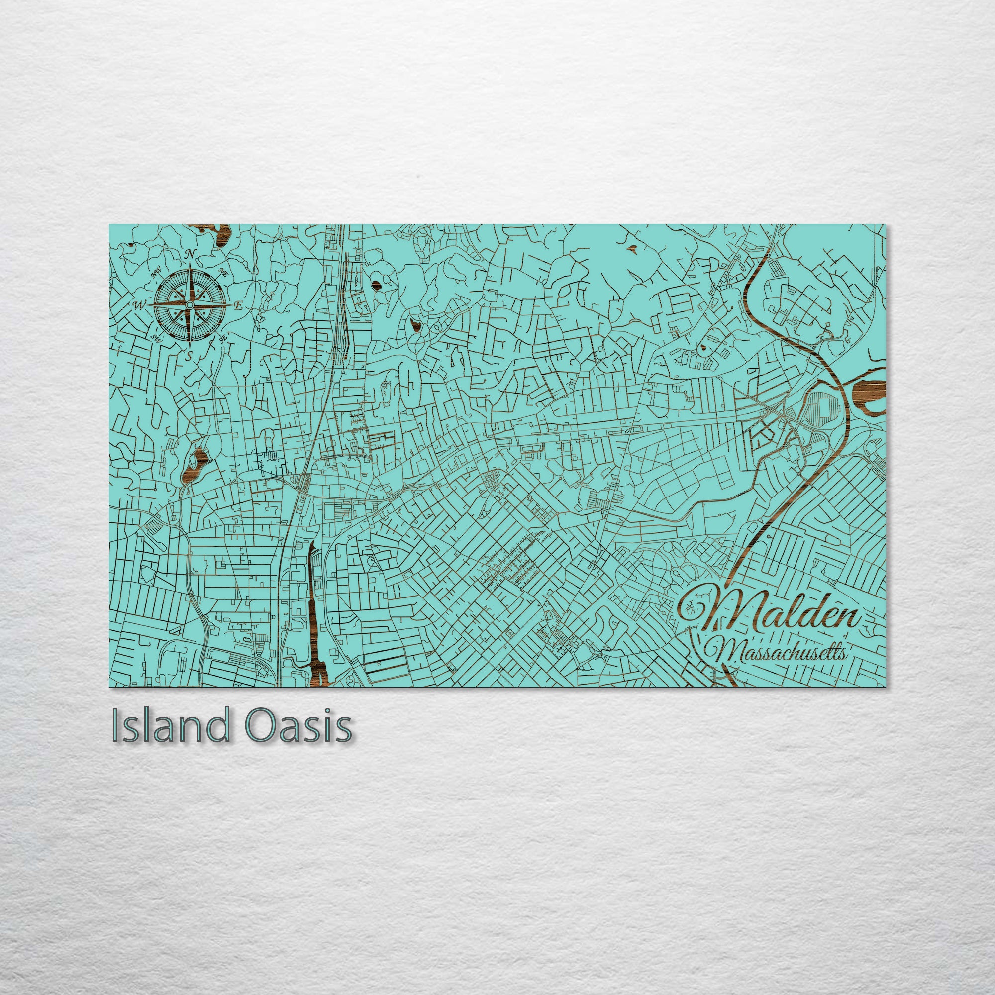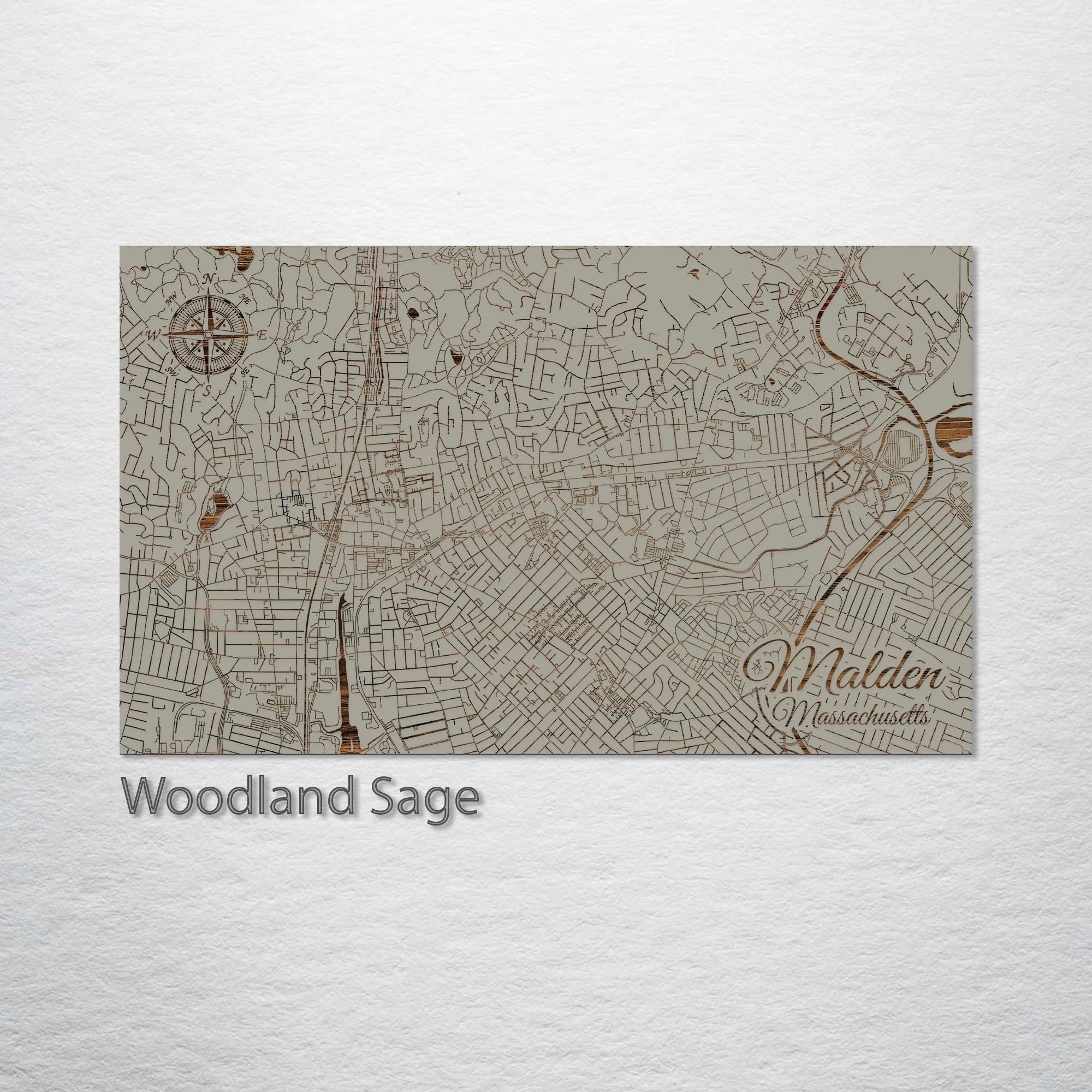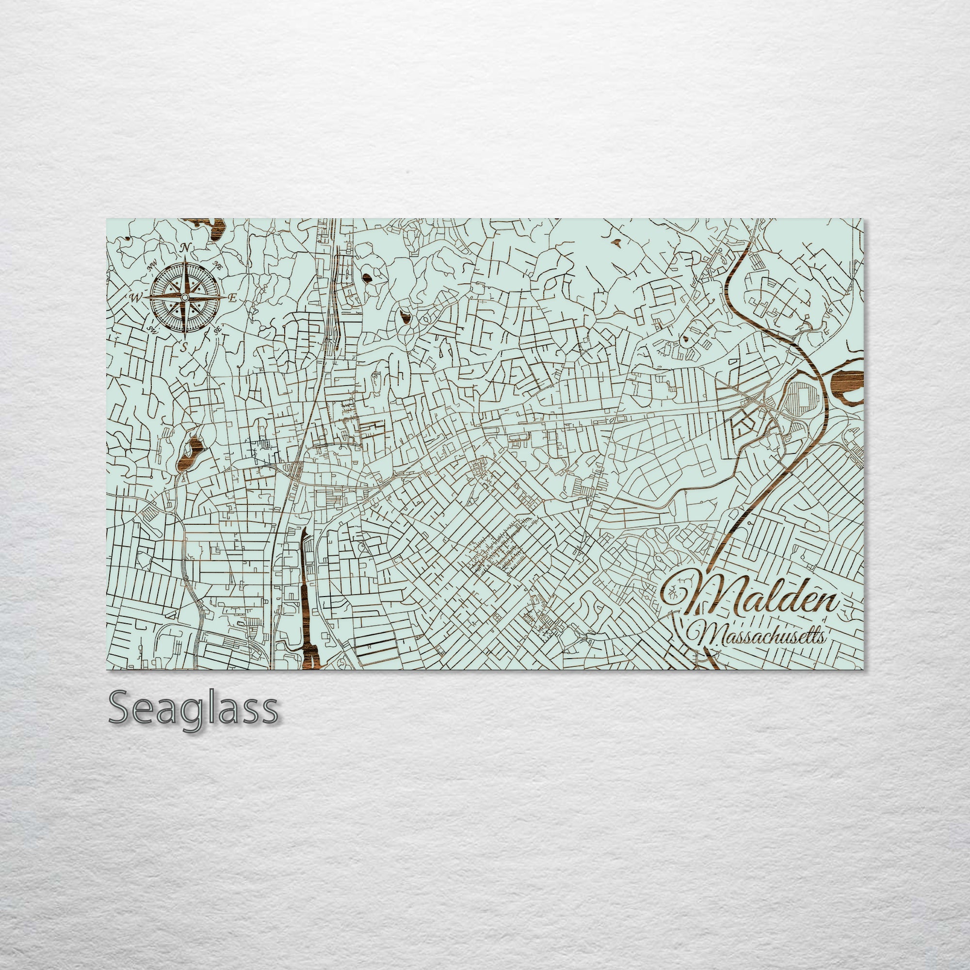 This is a street map of Malden, MA designed by Fire & Pine artists.