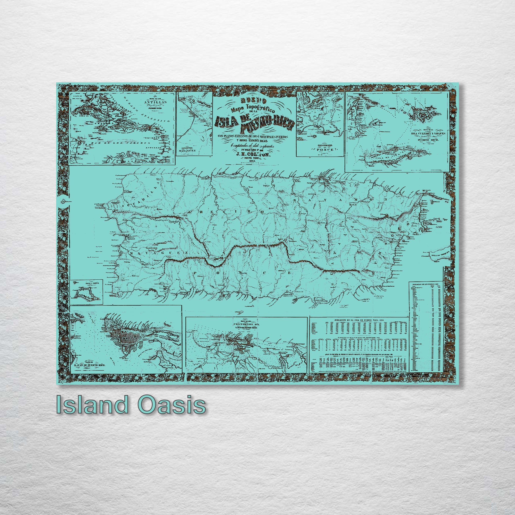 1863 Mapa Topografico De La Puerto Rico