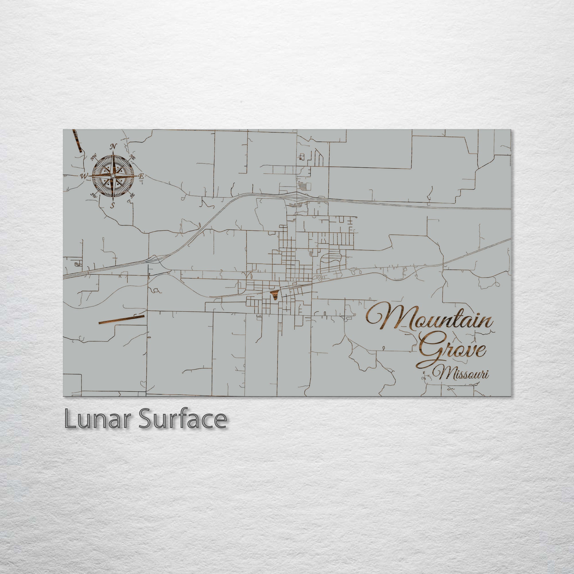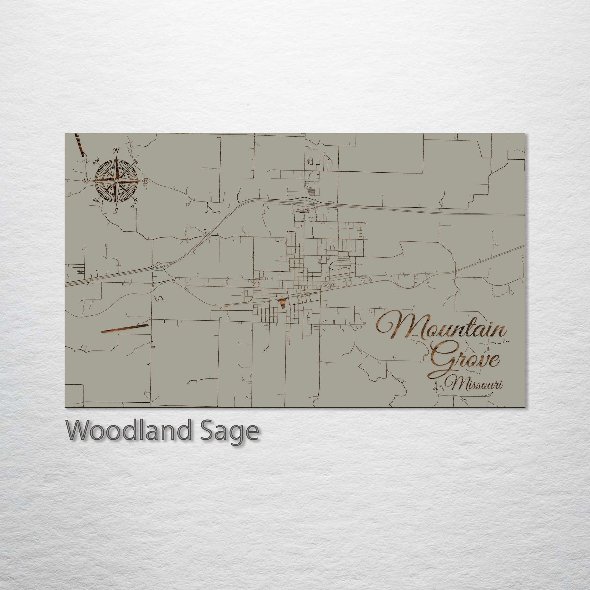 This is a street map of Mountain Grove, MO designed by Fire & Pine artists.