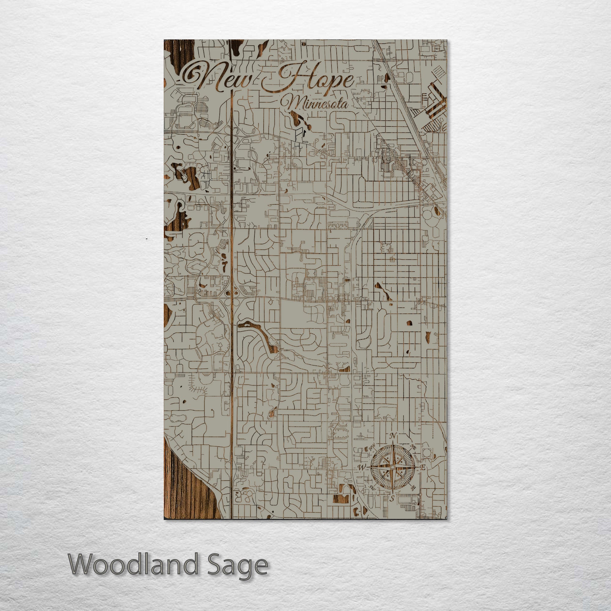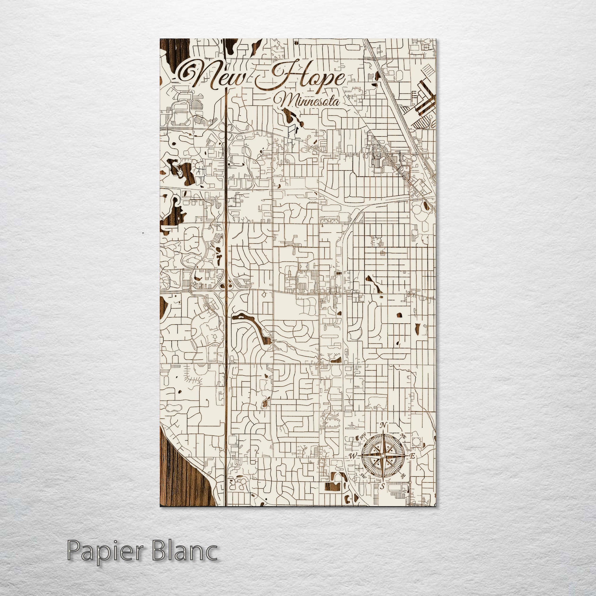 This is a street map of New Hope, MN designed by Fire & Pine artists.