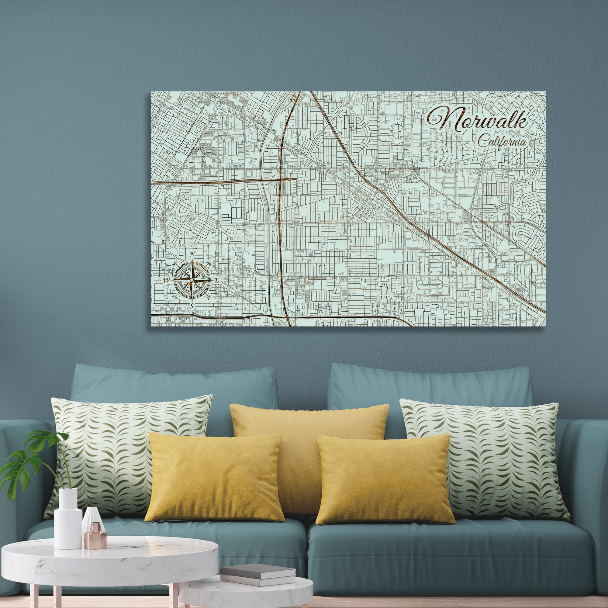 This is a street map of Norwalk, CA designed by Fire & Pine artists.