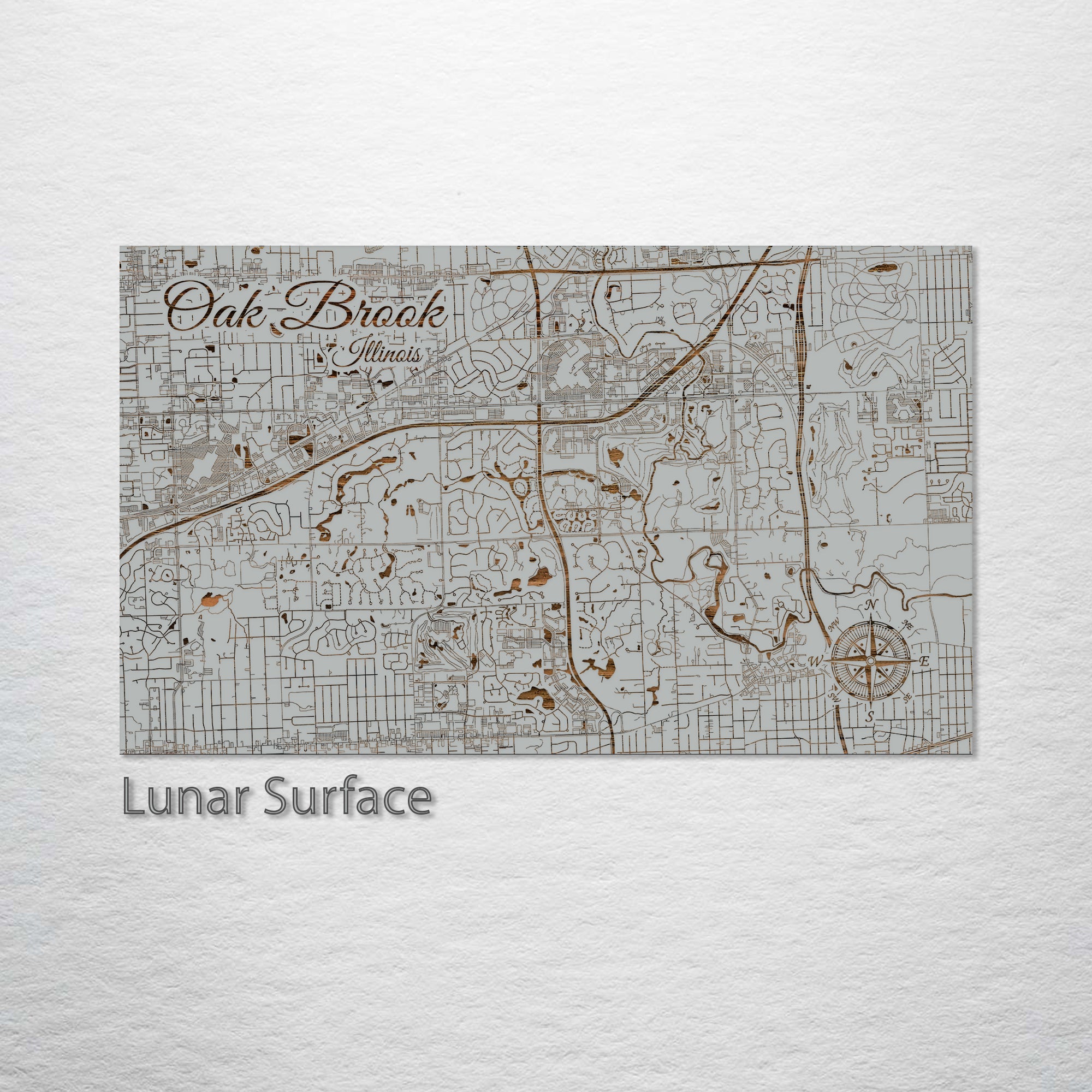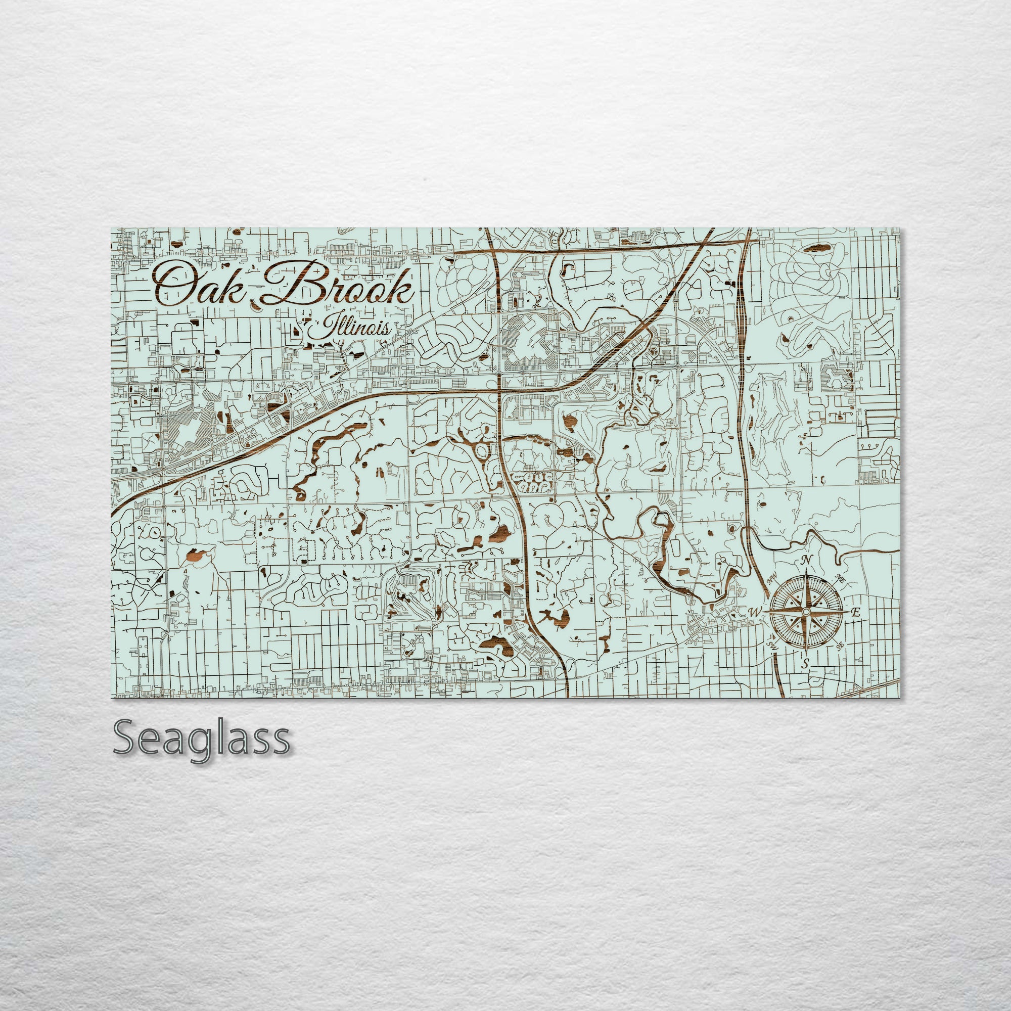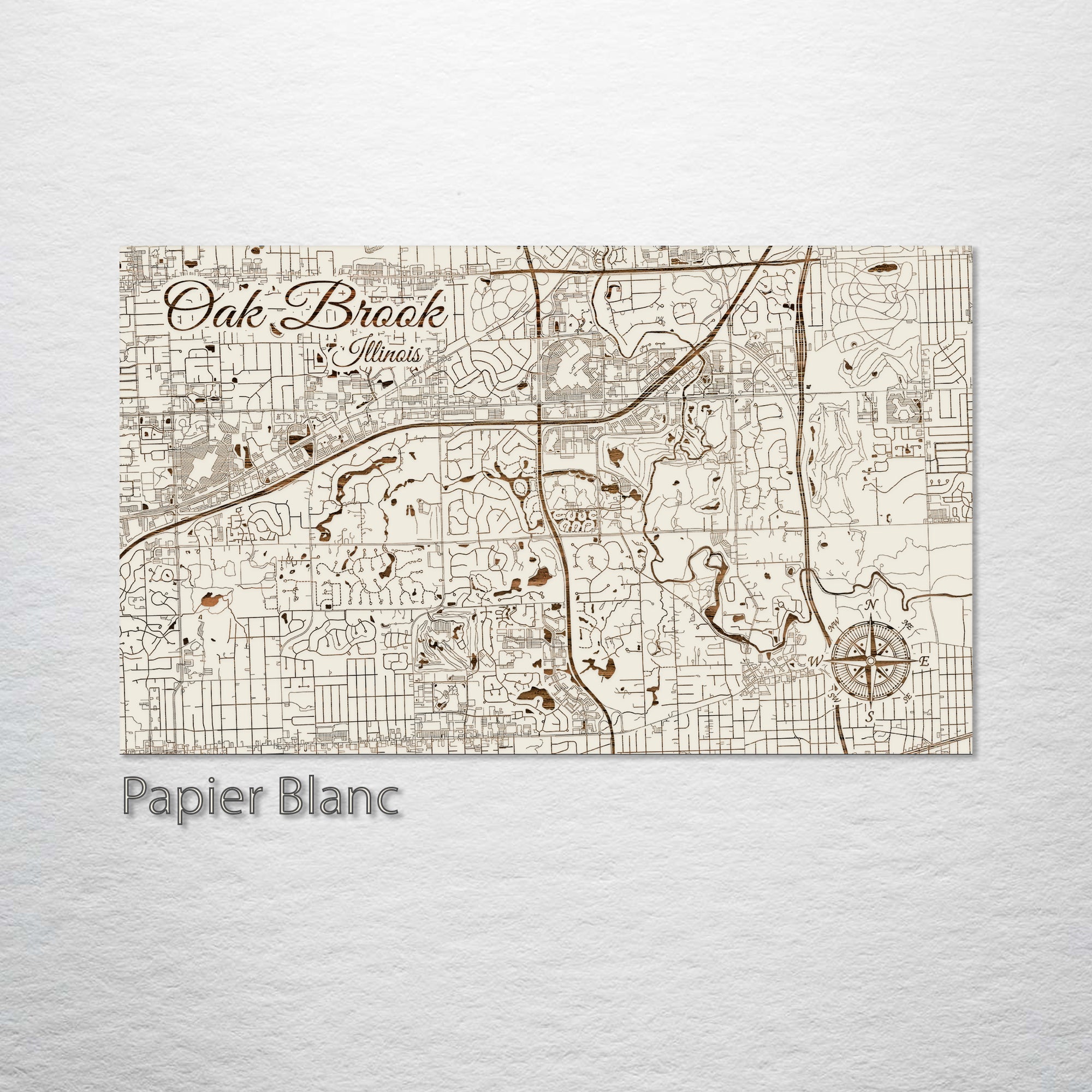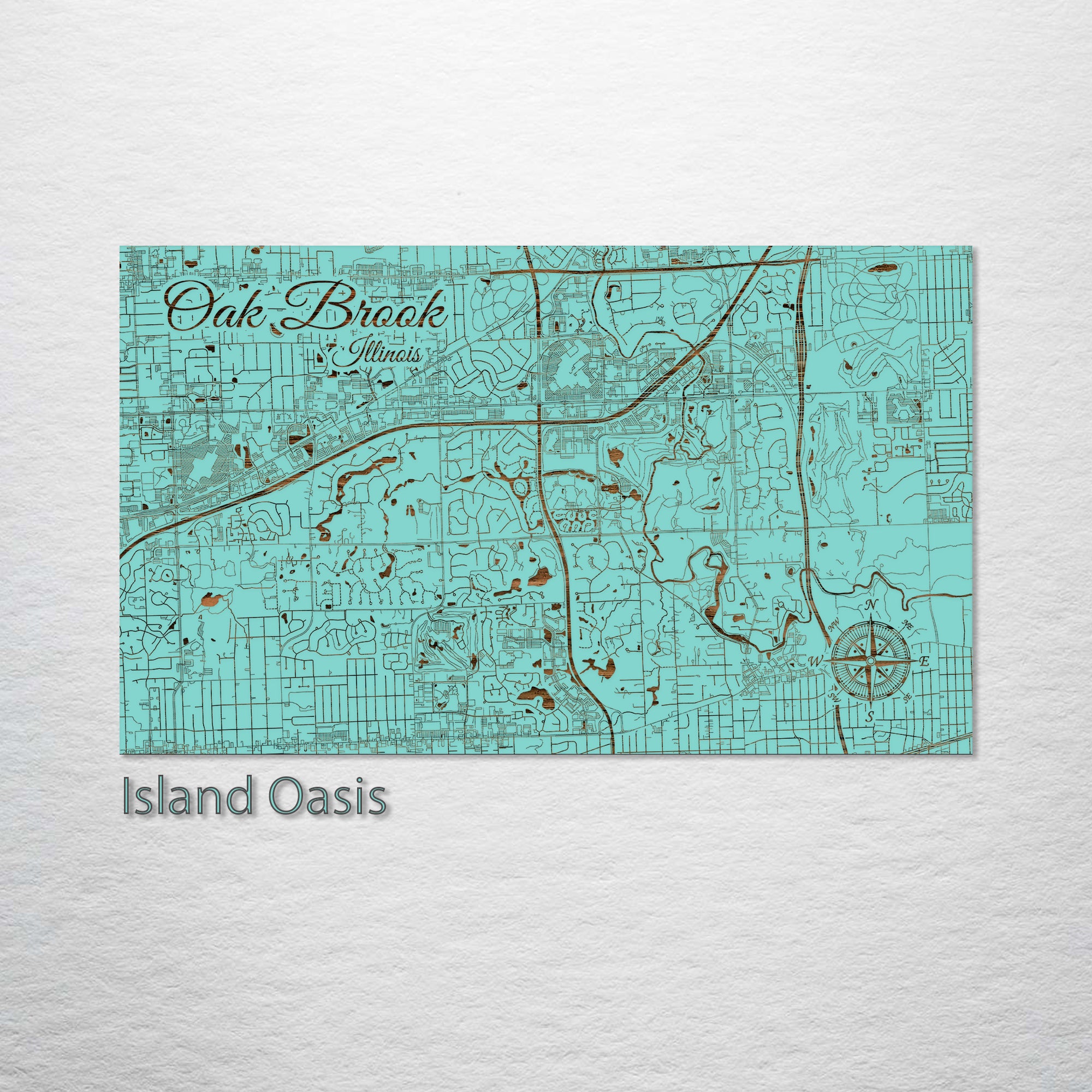 This is a street map of Oak Brook, IL designed by Fire & Pine artists.