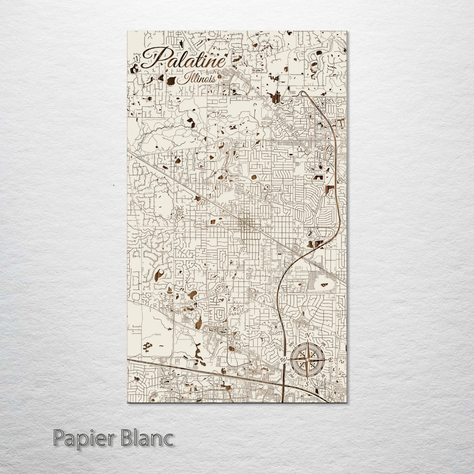 This is a street map of Palatine, IL designed by Fire & Pine artists.