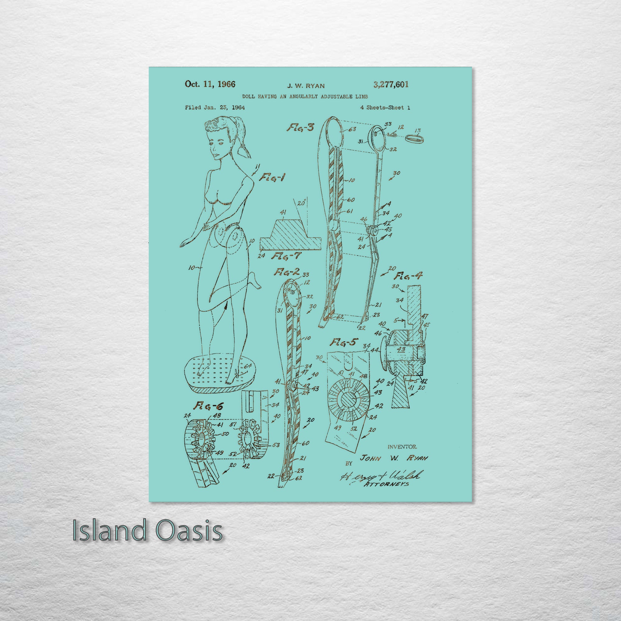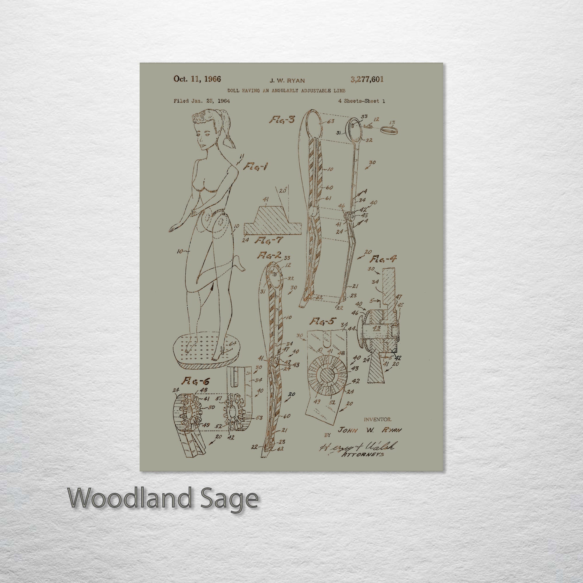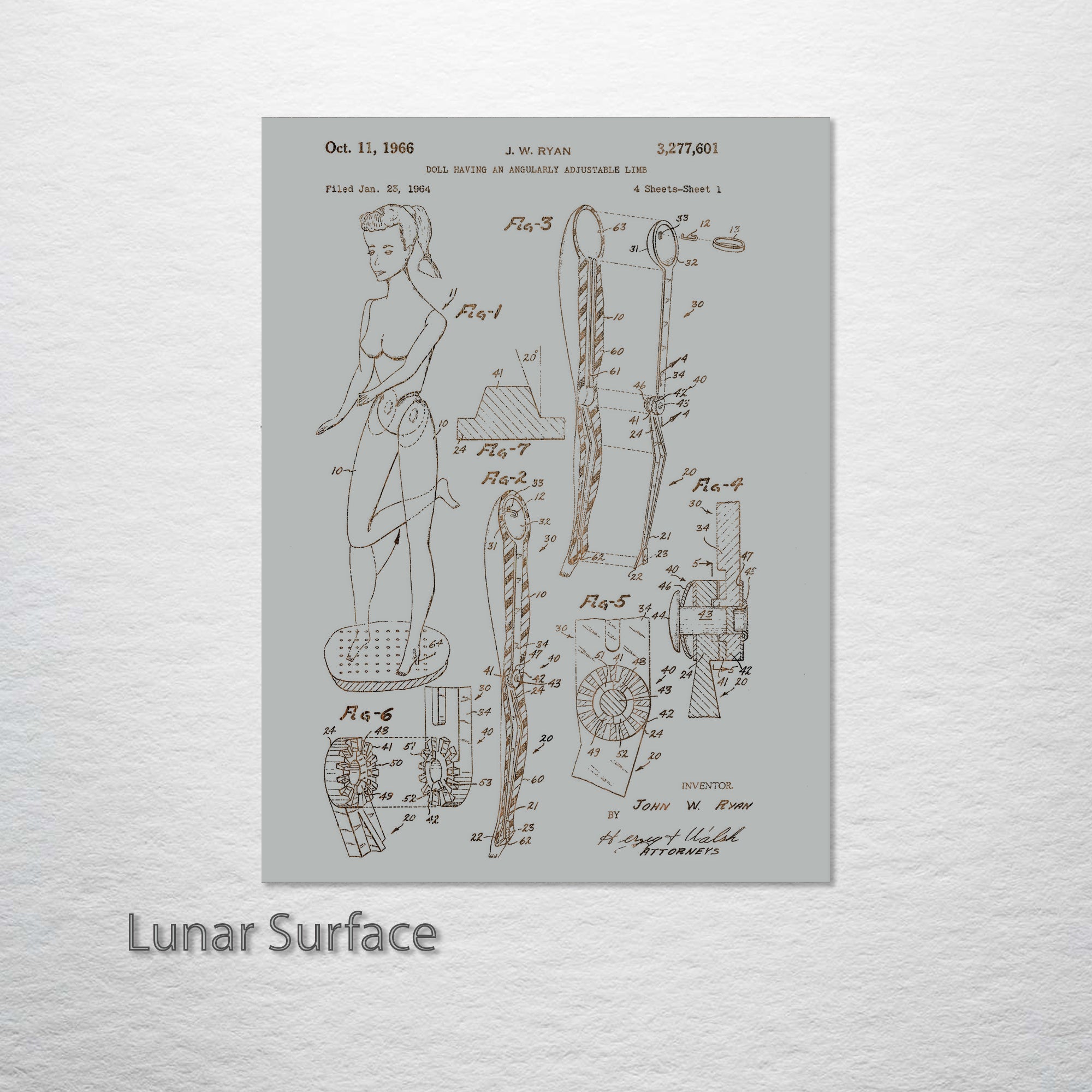 This is a Barbie Adjustable Limb US Patent piece designed by Fire & Pine artists.