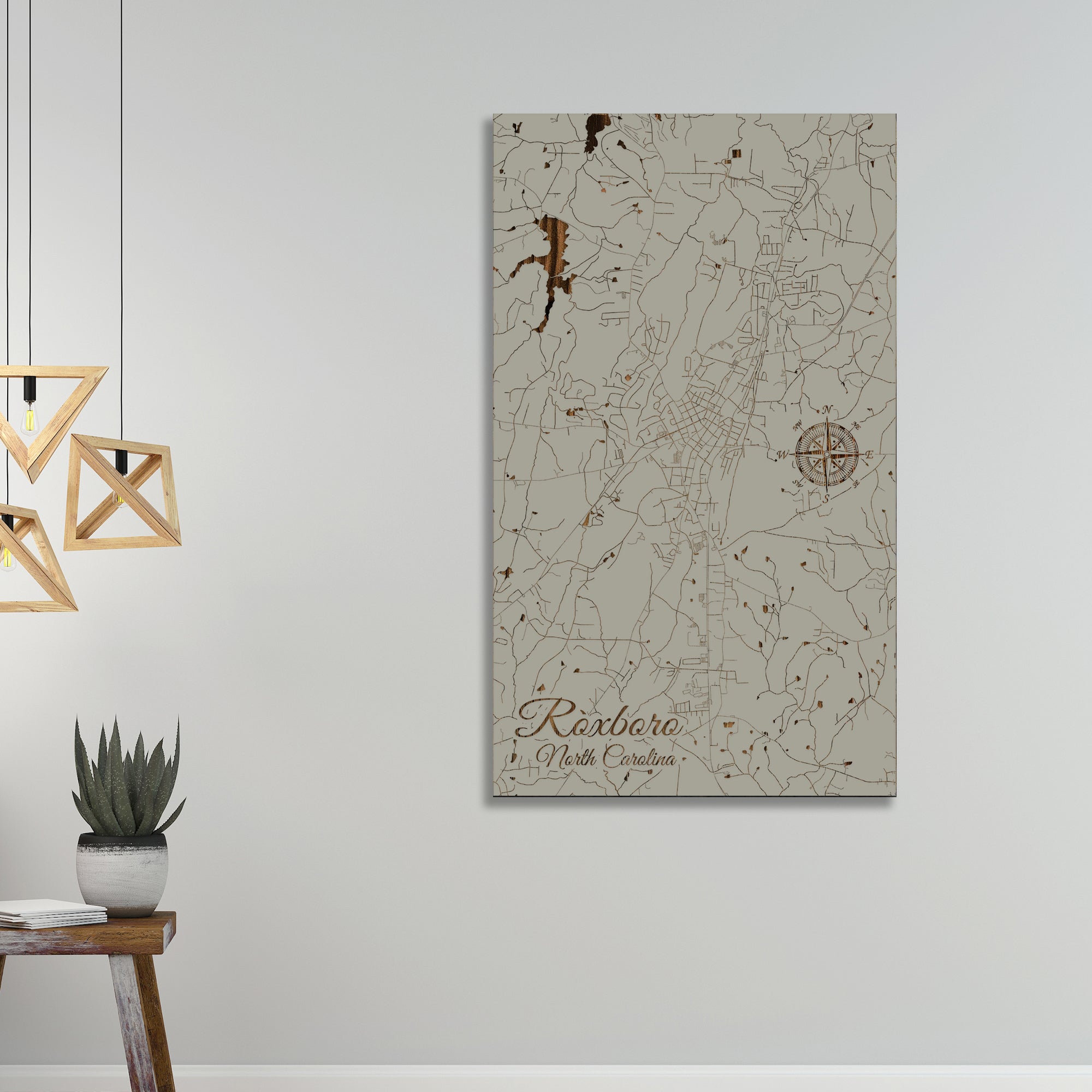 This is a street map of Roxboro, NC designed by Fire & Pine artists.
