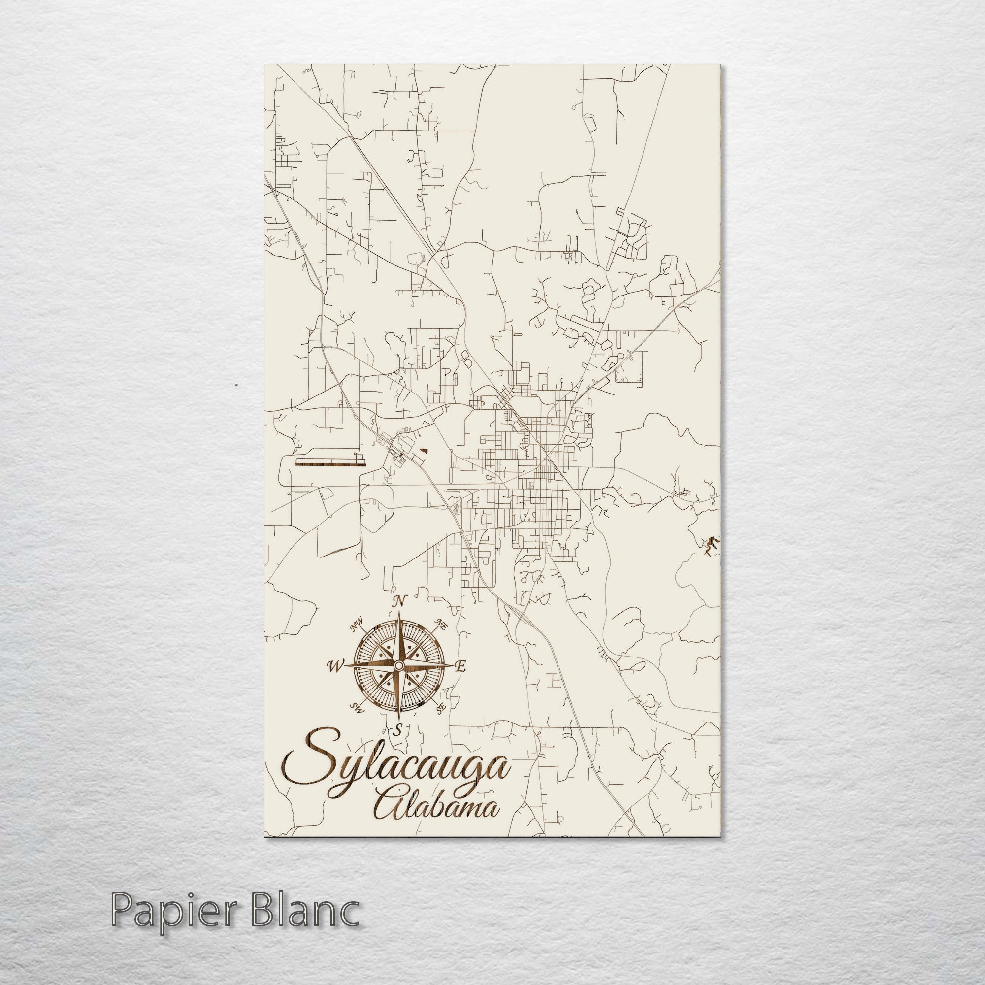 This is a street map of Sylacauga, AL designed by Fire & Pine artists.