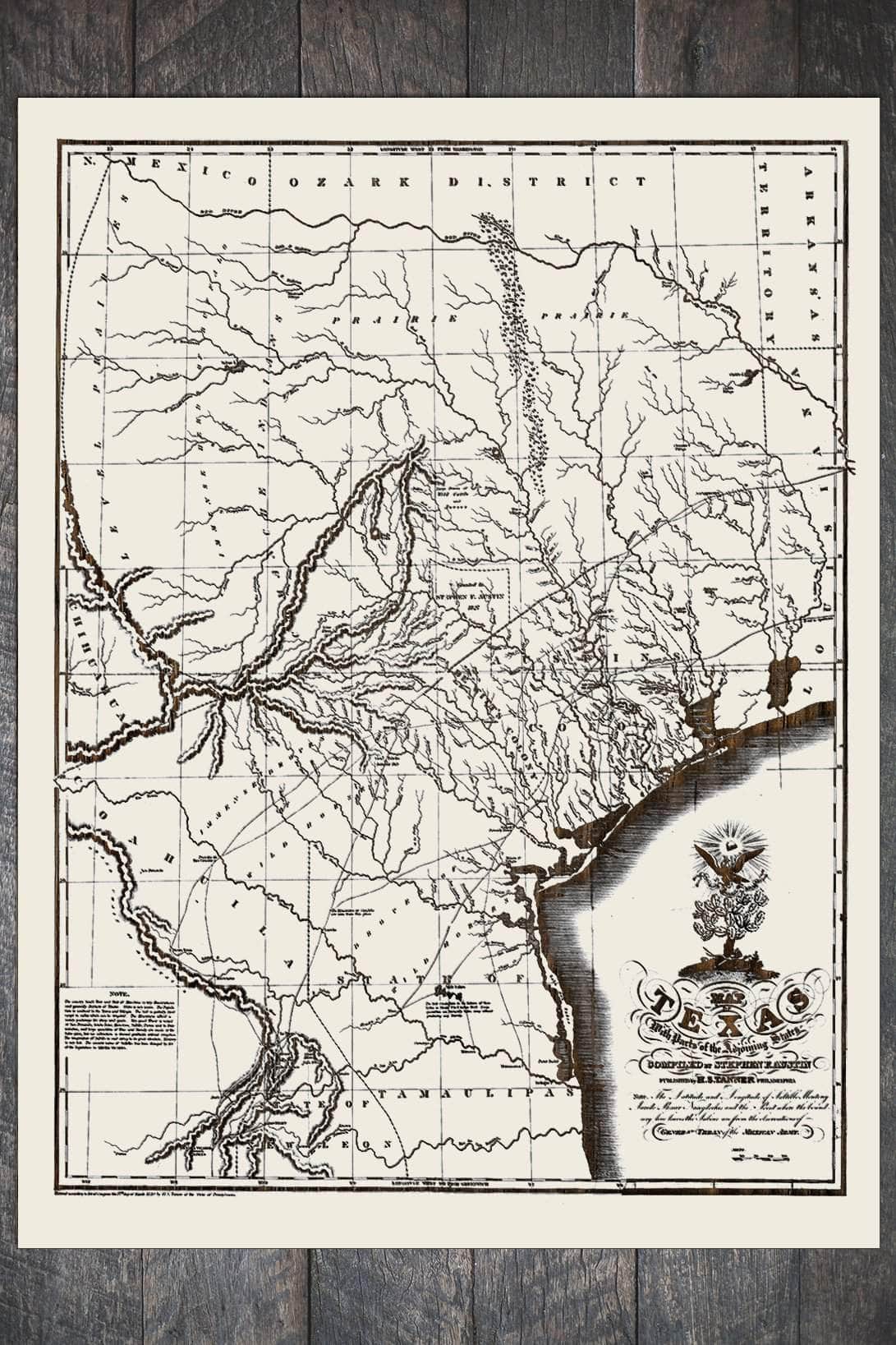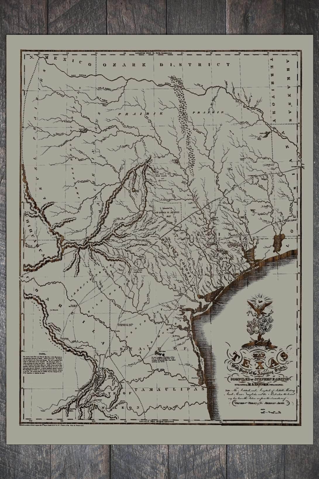 Map of Texas with Adjoining States 1830