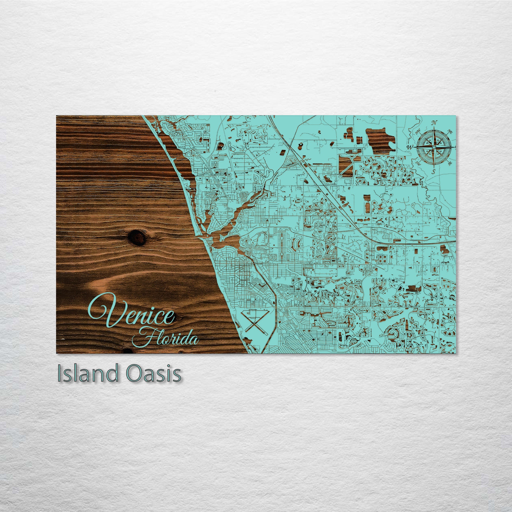 Sophisticated Art for Map Aficionados: The wood-engraved Venice, Florida street map is a remarkable piece for any art collection. Expertly crafted from first-rate pine wood, it intricately showcases the streets of Venice, Texas, creating a visually striking piece that is both elegant and detailed.